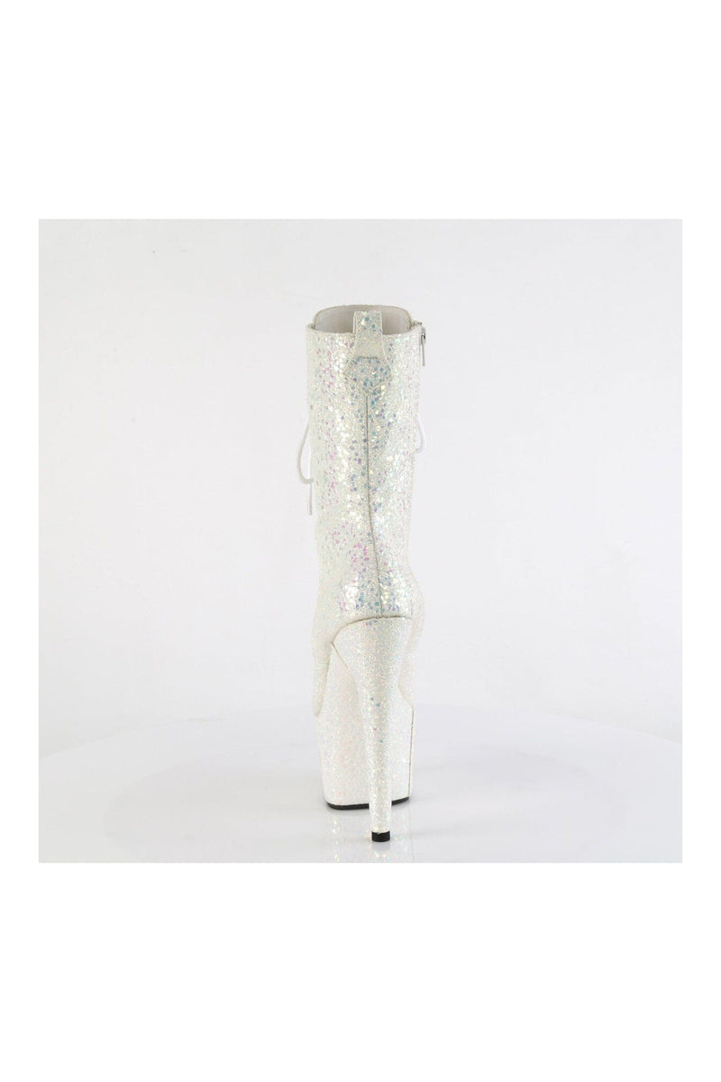 7" Heel, 2 3/4" Platform Lace-Up Hologram Glitter Ankle Boot, Side Zipper