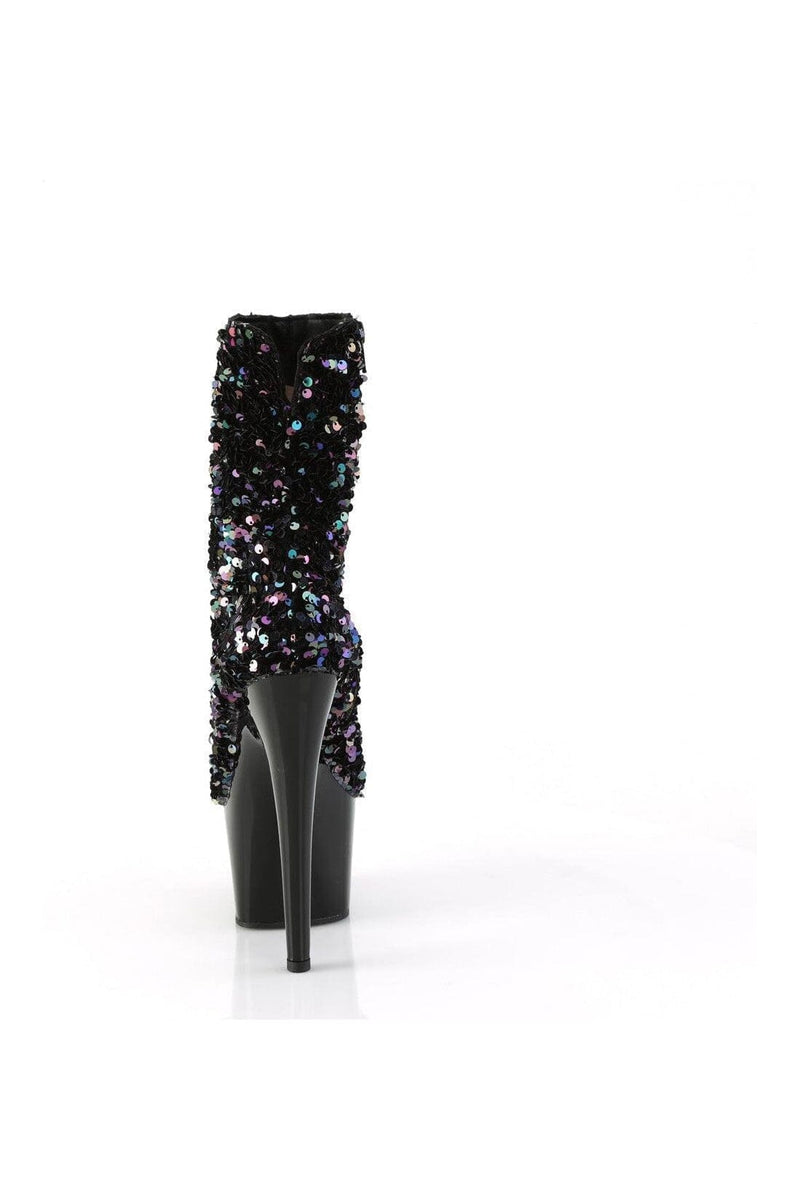 7" Heel, 2 3/4" Platform Sequins Ankle Boot, Inside Zipper
