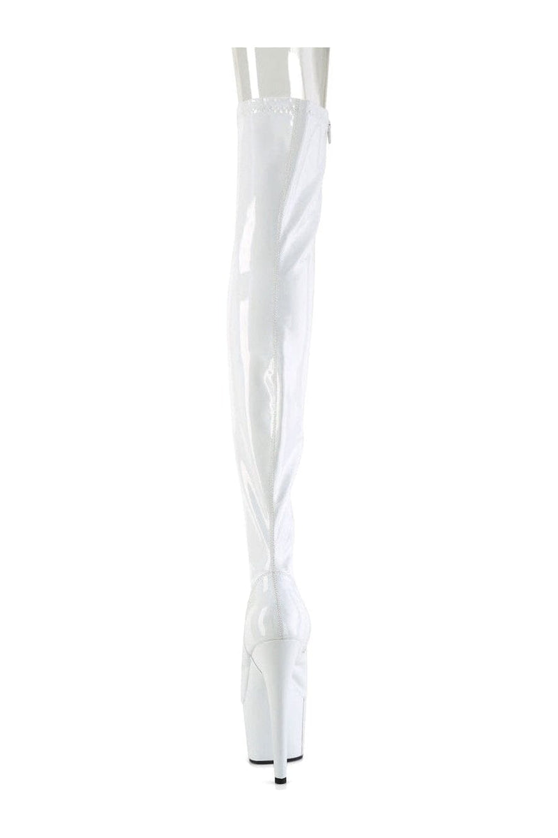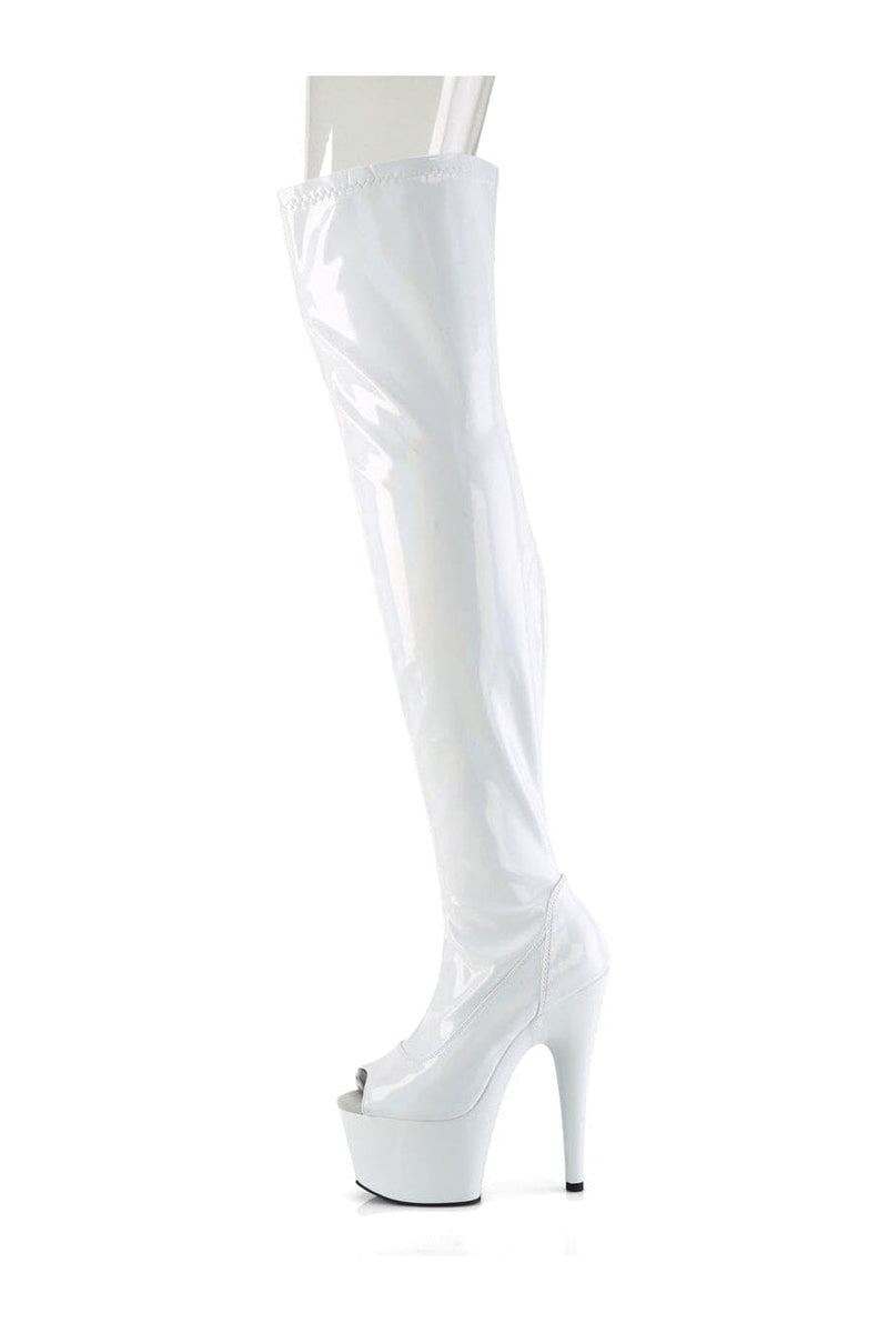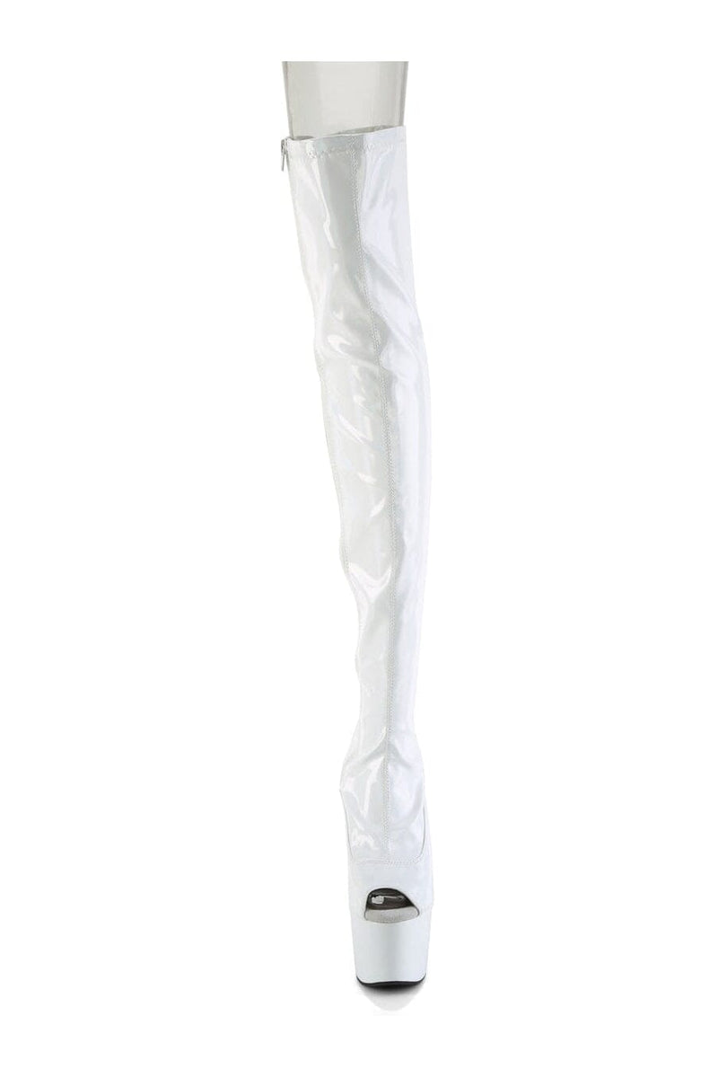 Pleaser ADORE-3011HWR White Hologram Thigh Boot in White Hologram