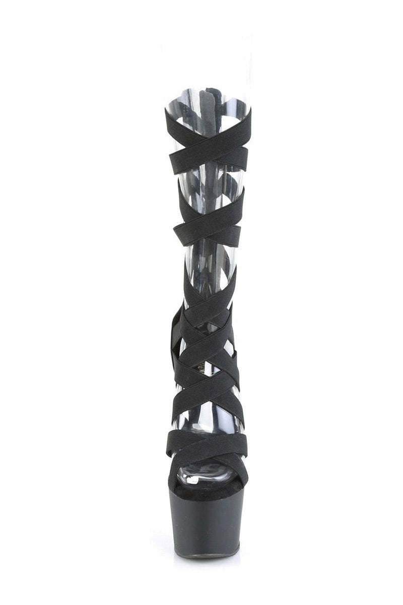 7" Heel, 2 3/4" Platform Criss Cross Bootie Sandal, Back Zipper