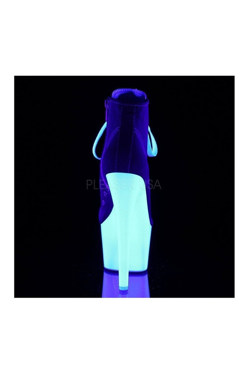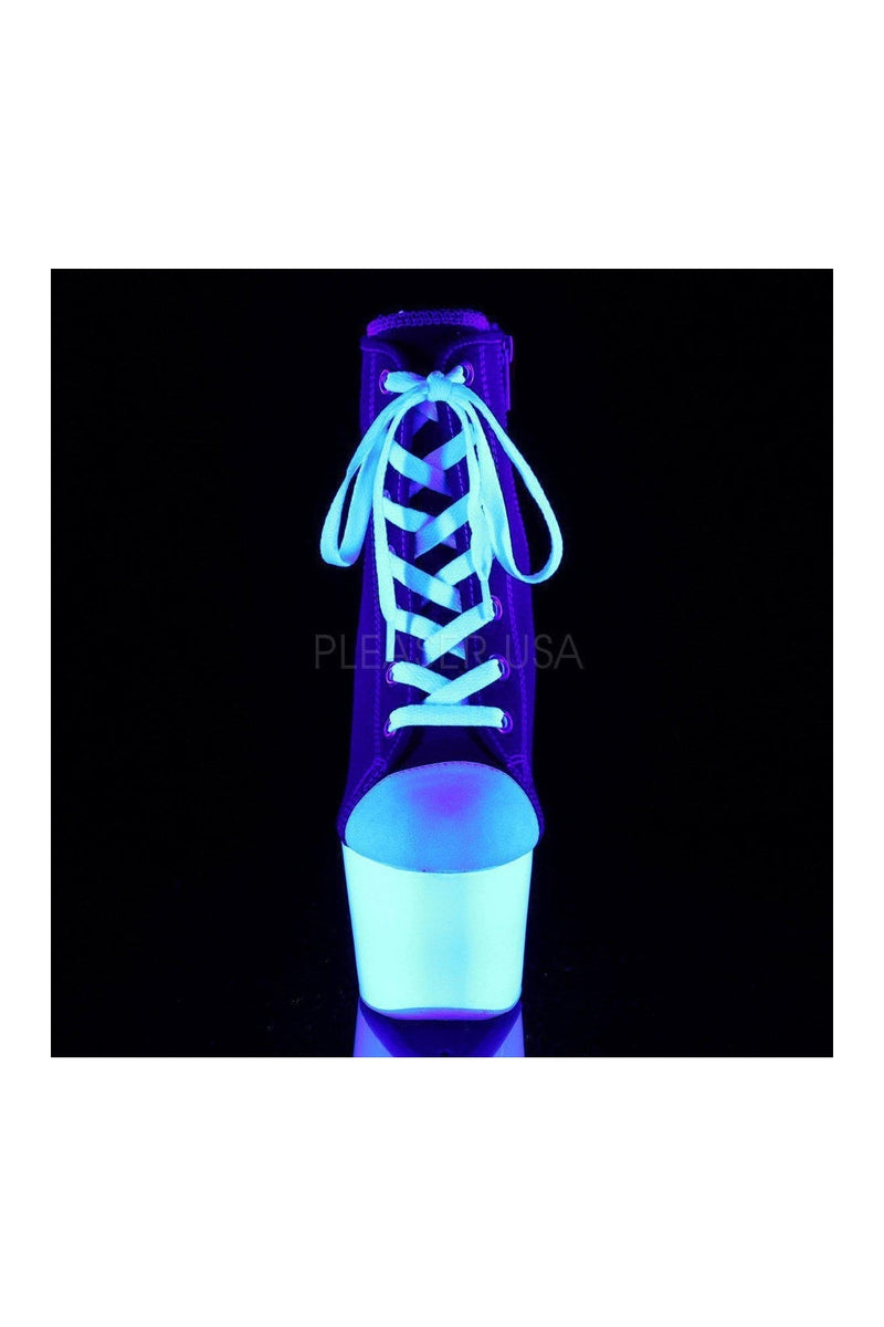 7" (178mm) Heel, 2 3/4" (70mm) Platform Lace Up Front Canvas Sneaker Featuring Blacklight Reactive Platform Bottom, Outsole & Toplift Full Inside Zip Closure,