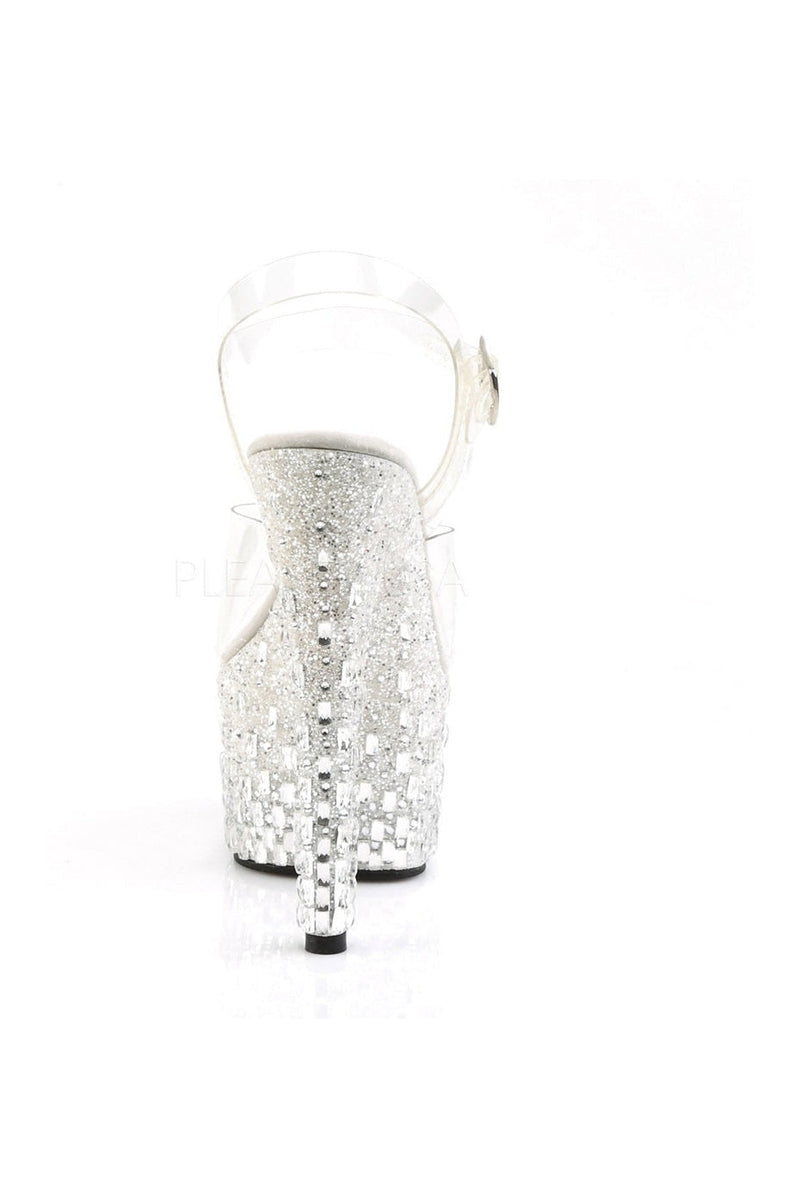 7" (17.8cm) Stiletto Heel 2 3/4" (7cm) Platform Ankle Strap Sandal Featuring Entire Platform Embellished with Silver Glitter & Stones