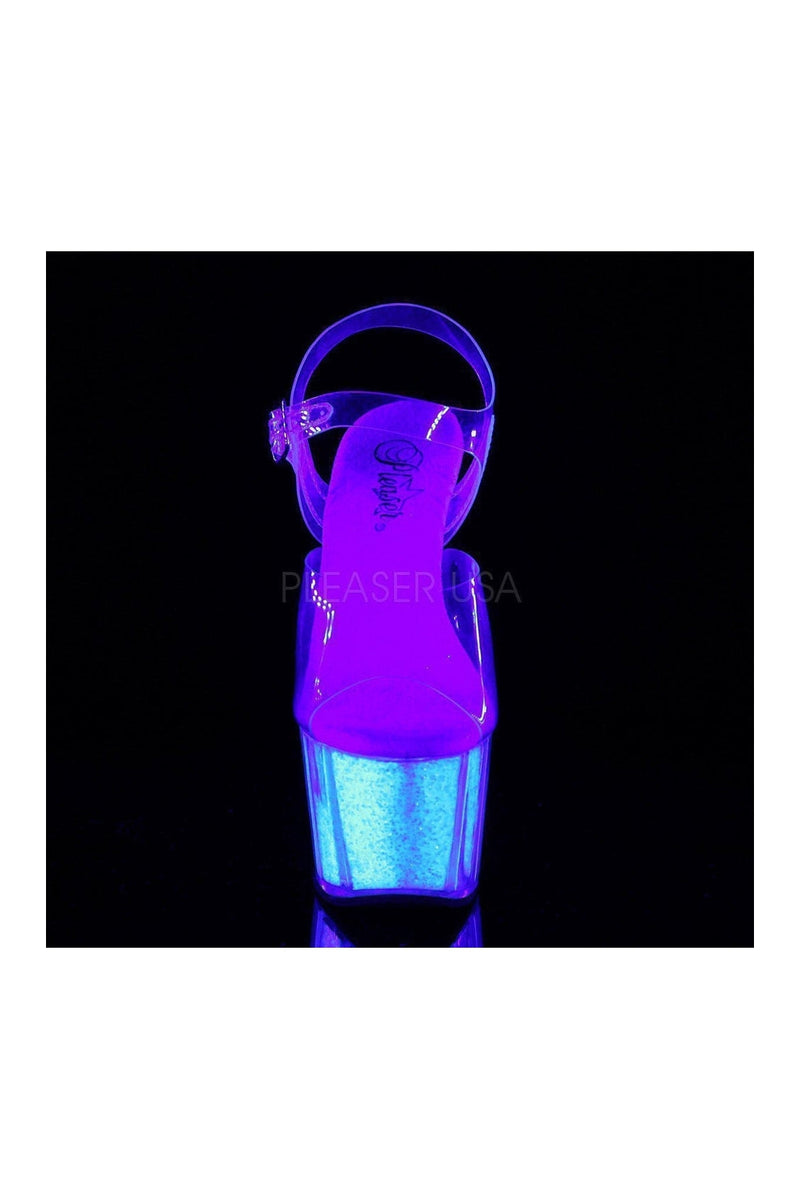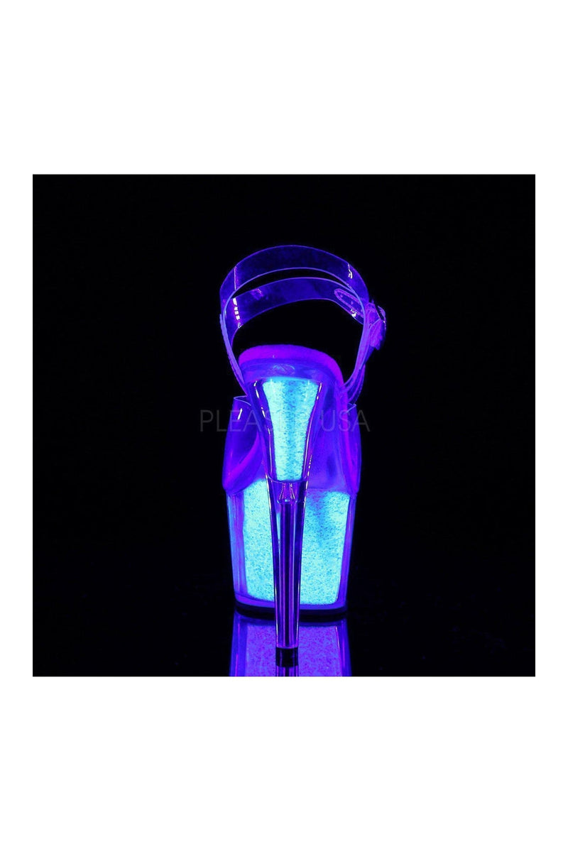 7" (178mm) Heel, 2 3/4" (70mm) Platform Ankle Strap Sandal w/ UV Blacklight Reactive Glitter Inserts in the Platform Bottom