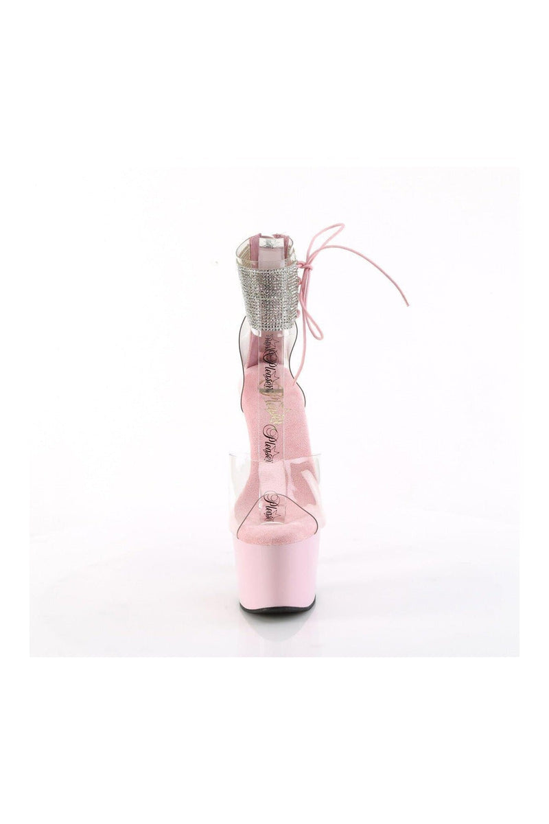 7" Heel, 2 3/4" Platform Rhinestone Ankle Cuff Sandal, Back Zipper