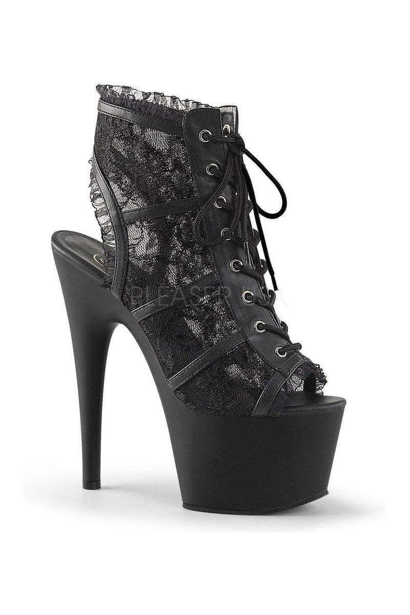 7" (17.8cm) Stiletto Heel 2 3/4" (7cm) Platform Open Toe/Stiletto Heel Bootie Featuring Mesh Lace Overlay & Lace Trim Detail
