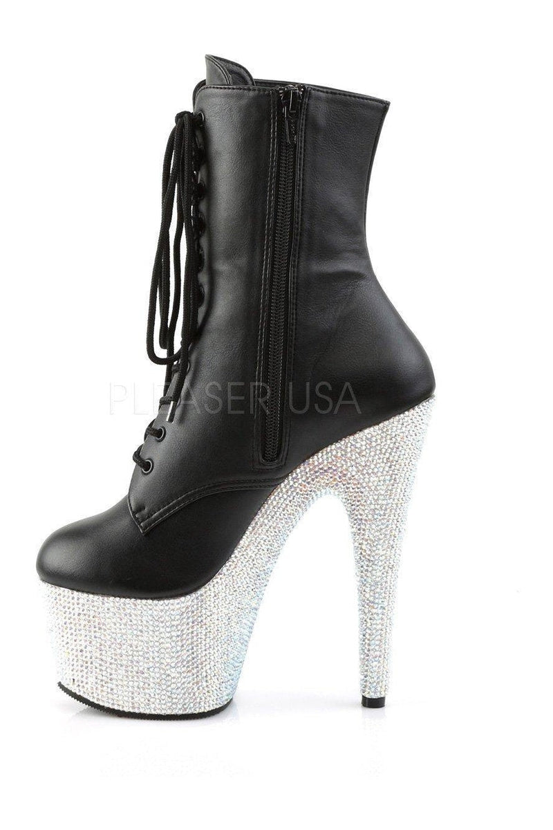 7" (17.8cm) Heel 2 3/4" (7cm) Platform Front Lace-Up Ankle Boot Featuring Rhinestones Encrusted All Over Entire Platform Inside Zip Closure