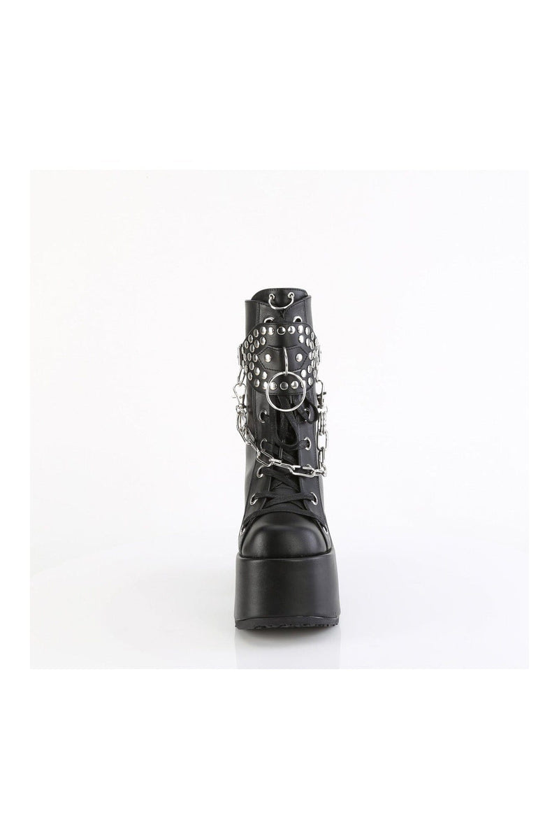 5" Chunky Heel, 3" Platform Lace-Up Mid-Calf Boot, Back Zipper