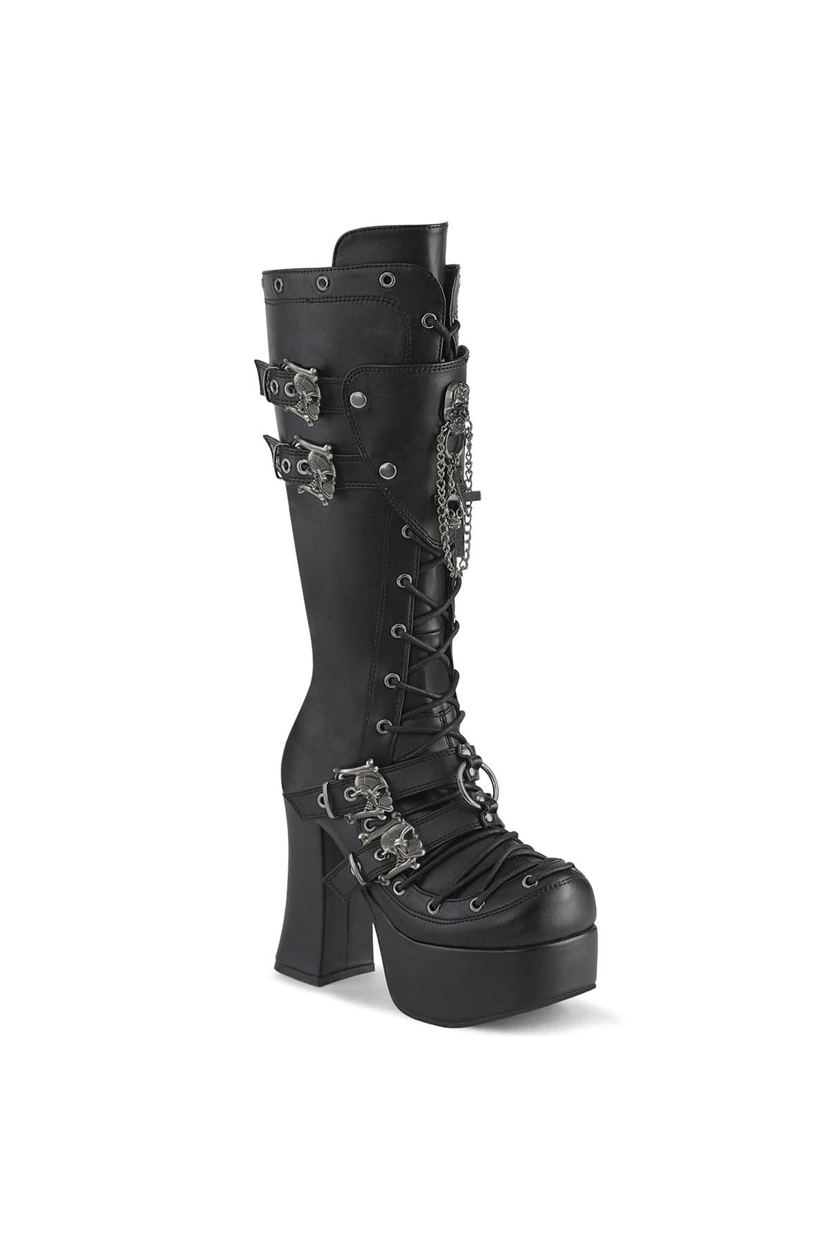 4 1/2" Heel, 2" Platform Lace-Up Front Knee High Boot, Inside Zipper