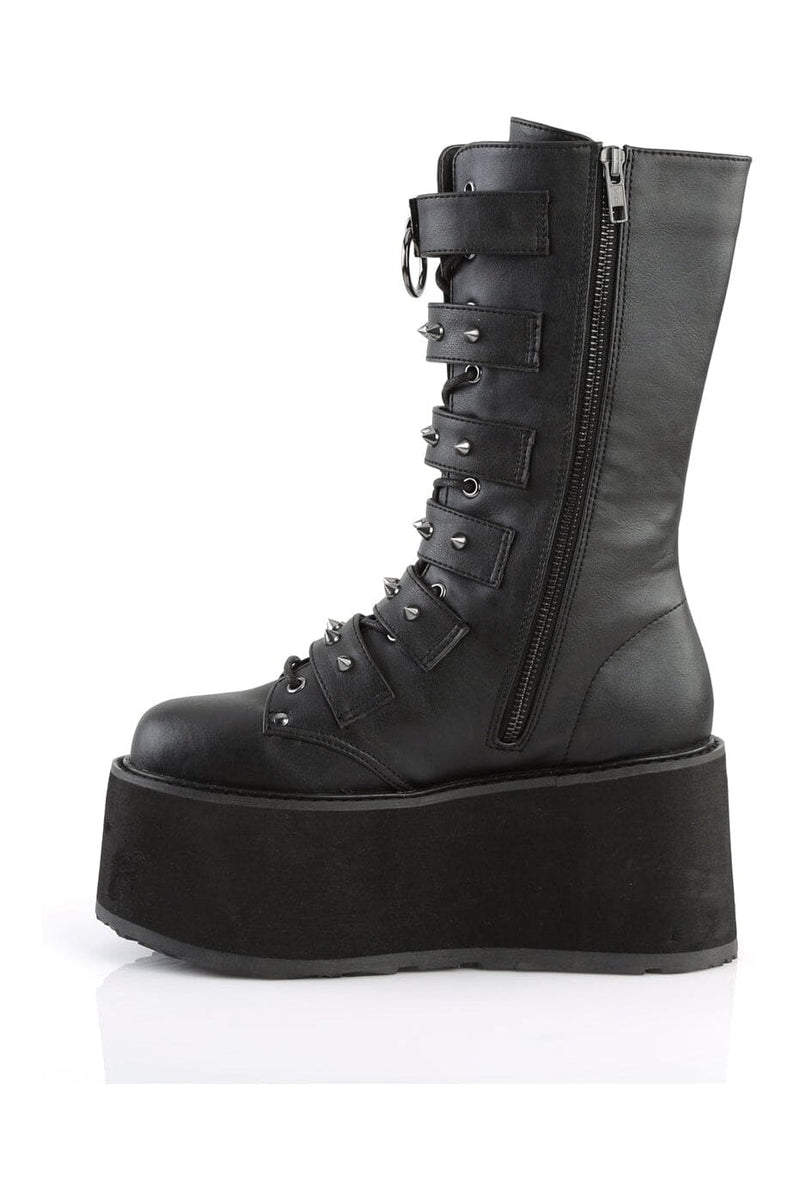 3 1/2" Platform Mid-Calf Bootw/6 BuckleStraps, Metal Side Zipper