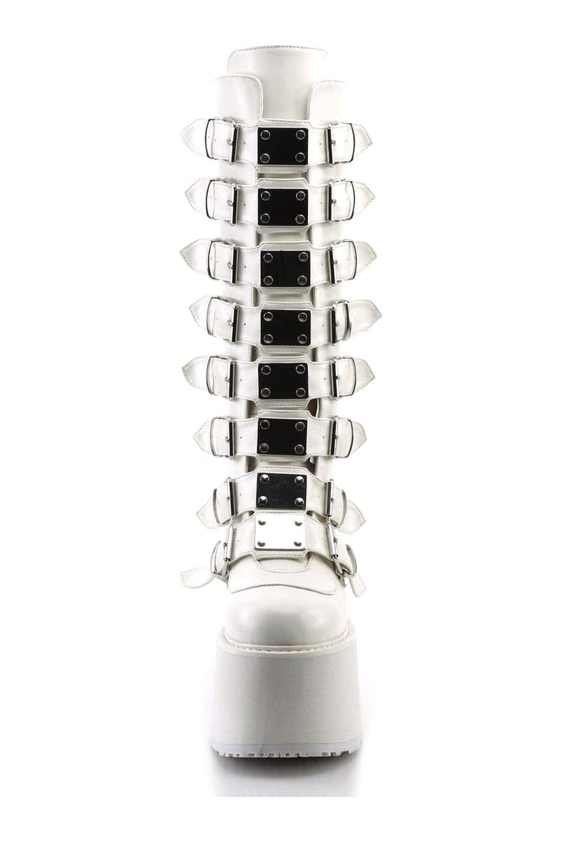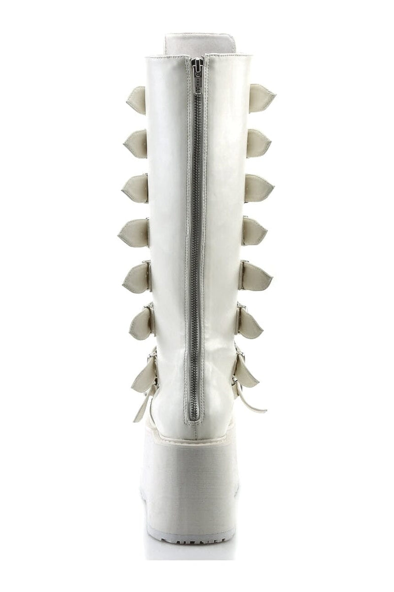 DAMNED-318 White Vegan Leather Knee Boot