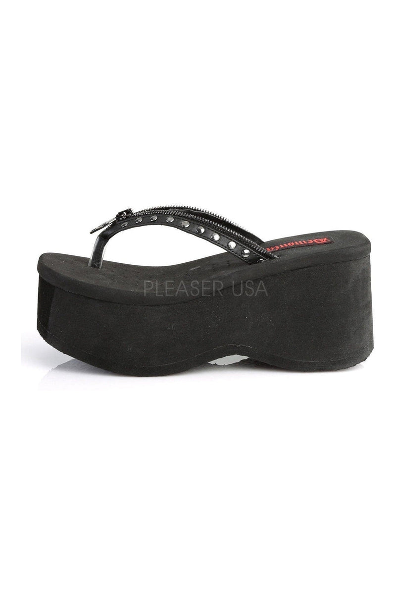 3 1/2" (89mm) Platform Studded Thong Sandal Featuring Ornamental Zipper Trim w/ Skull Zipper Head