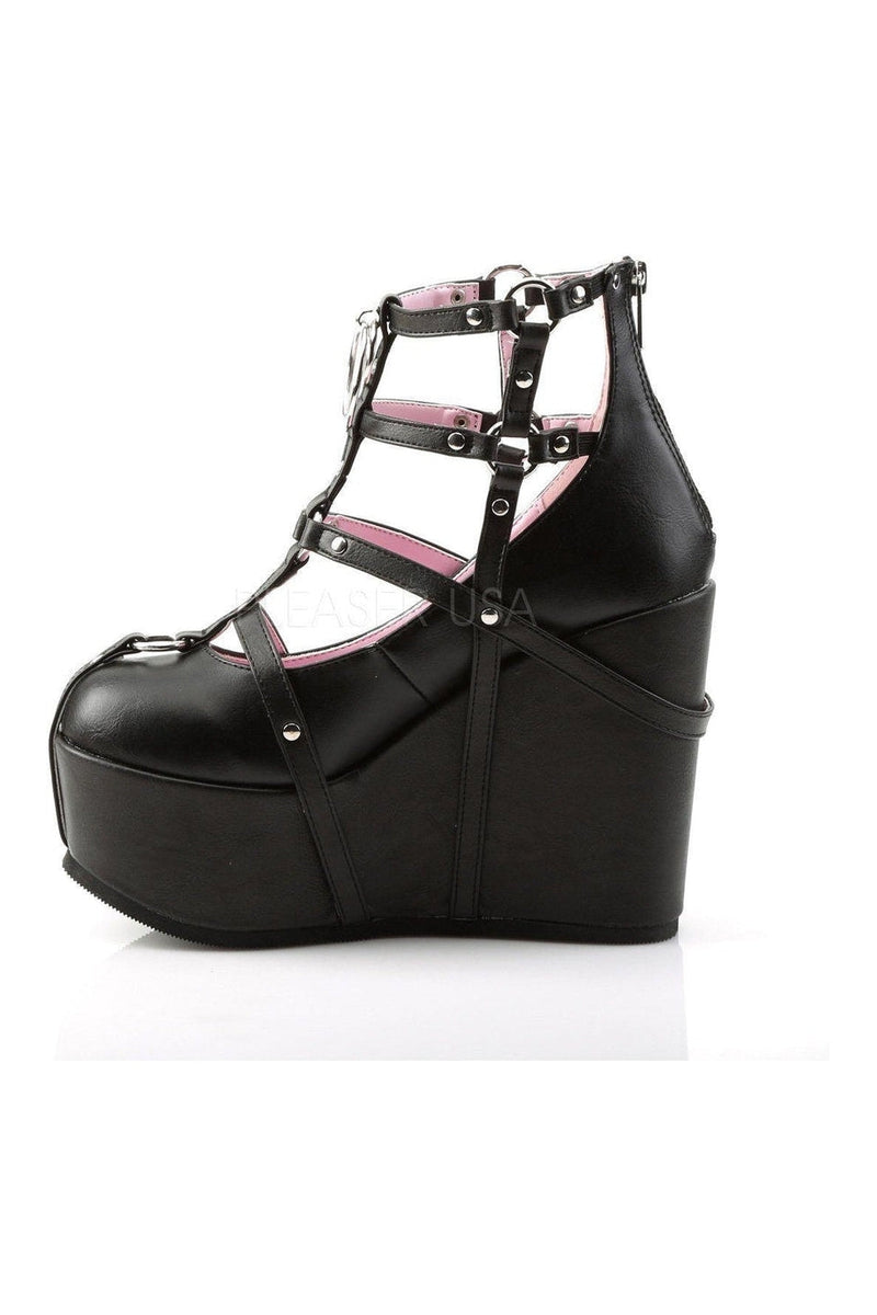 5" (12.7cm) Wedge Platform Cage Bootie Featuring Studding, Multi-Sized O-Rings & Pentagram Charm