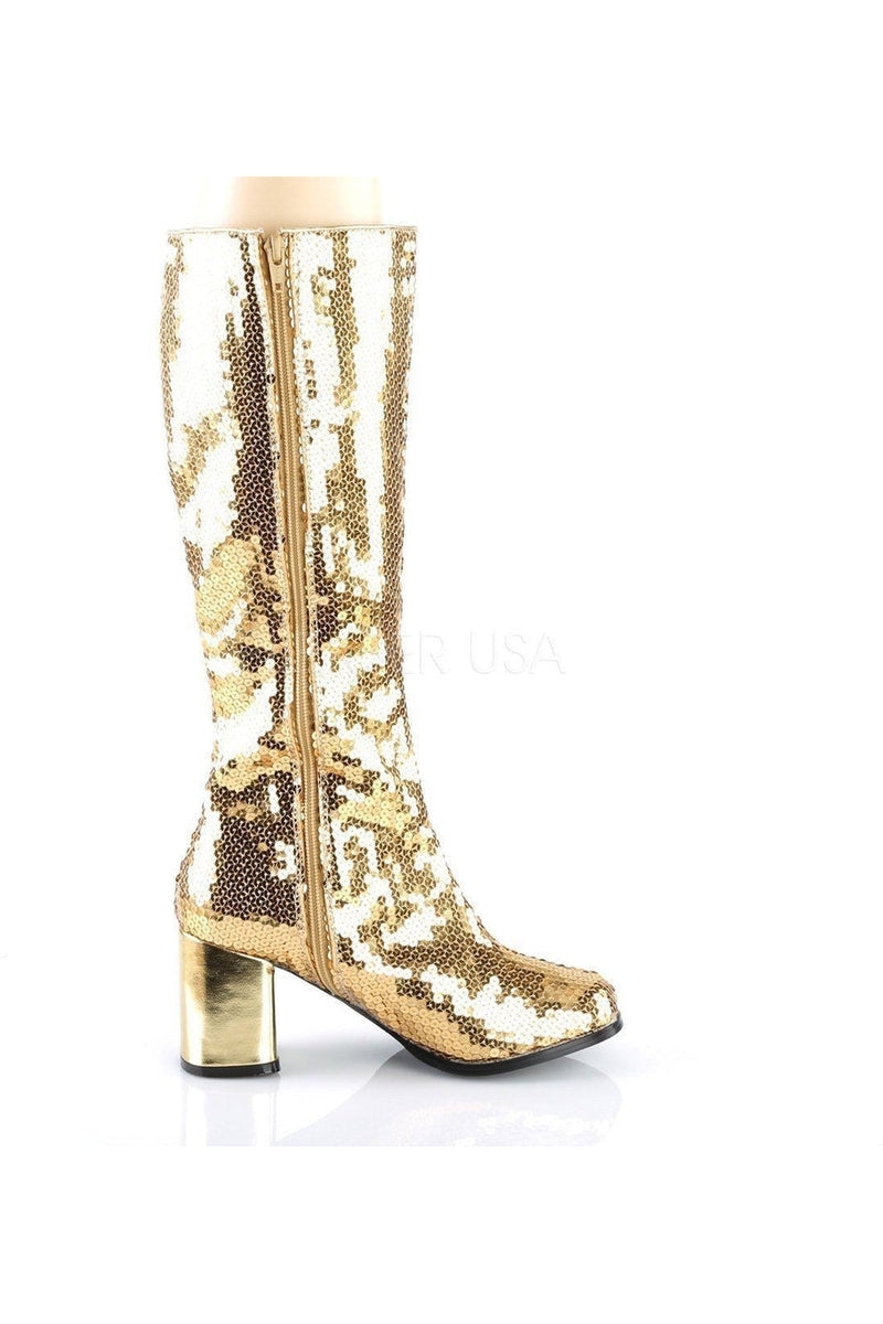 Bordello SPECTACUL-300SQ Knee Boot in Gold Sequins from SexyShoes.com