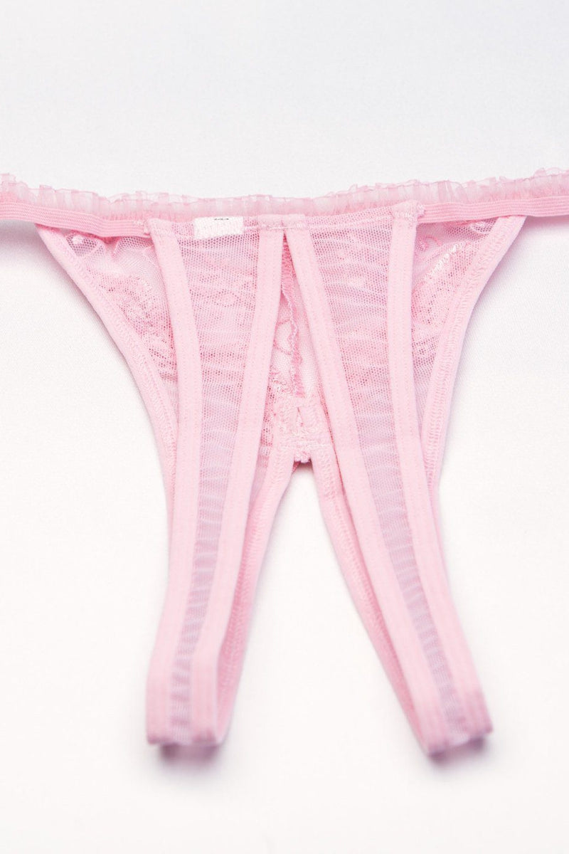 Scalloped Embroidery Open Front Thong Panty Colors: Red, Black, Pink, Purple, White. One Size. Also available in Plus Sizes.