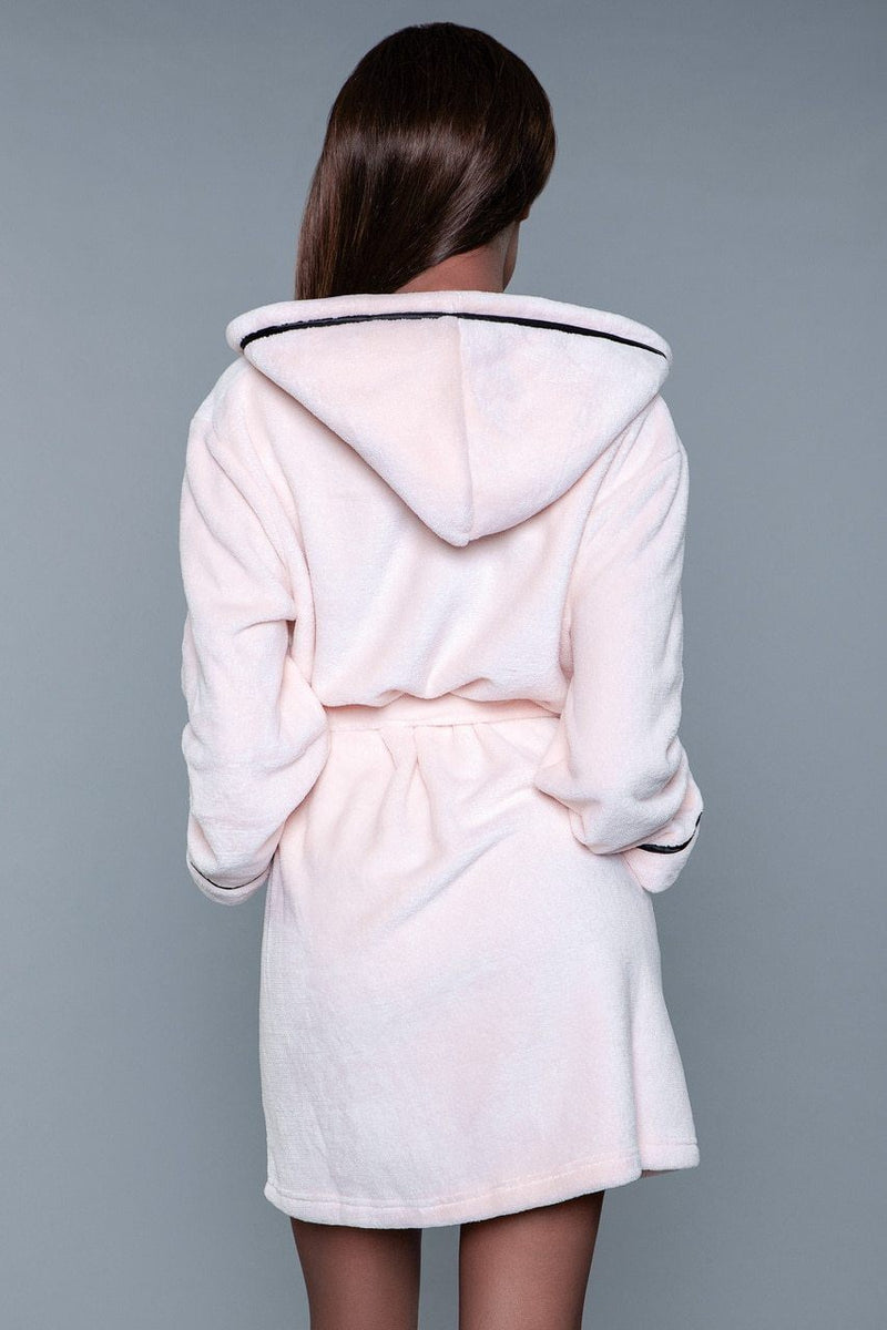 Ultra soft fluffy robe, mid-thigh length, with two front pockets
