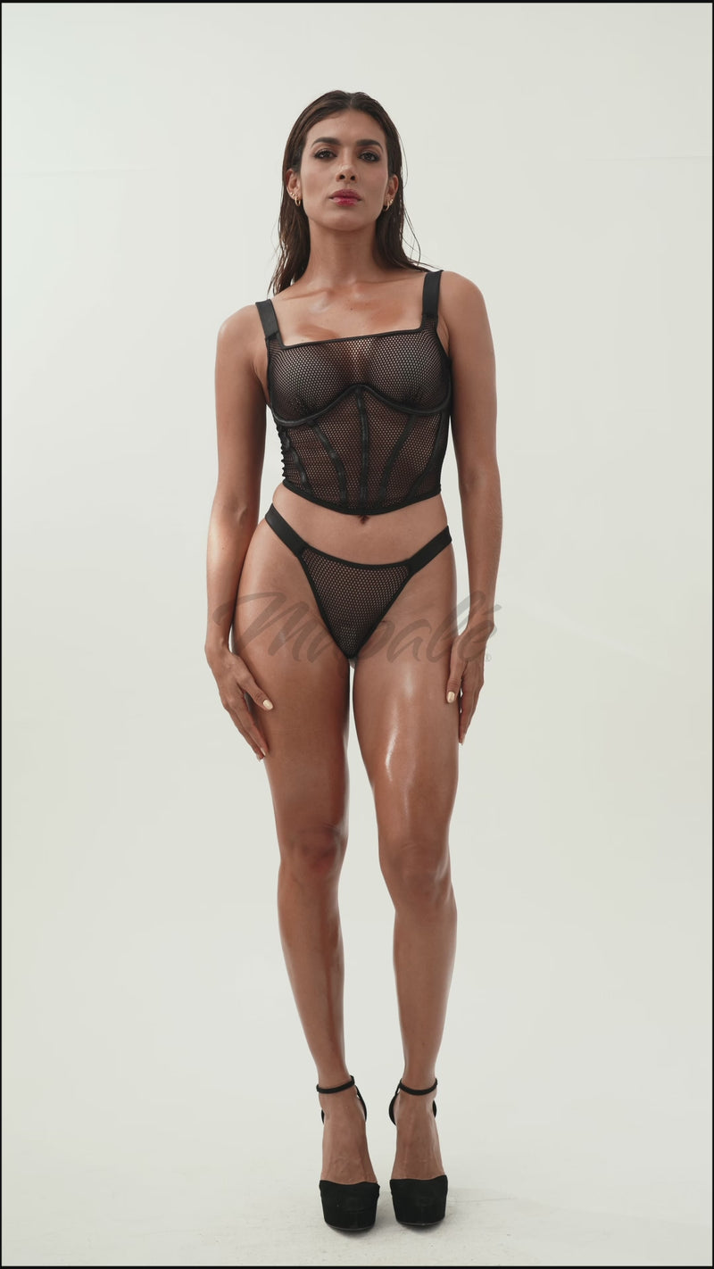 This versatile two-piece set includes an underwire top with faux boning for a corset-inspired look and a medium-coverage bottom. Perfect for the bedroom or styled as a bold top for a night out.