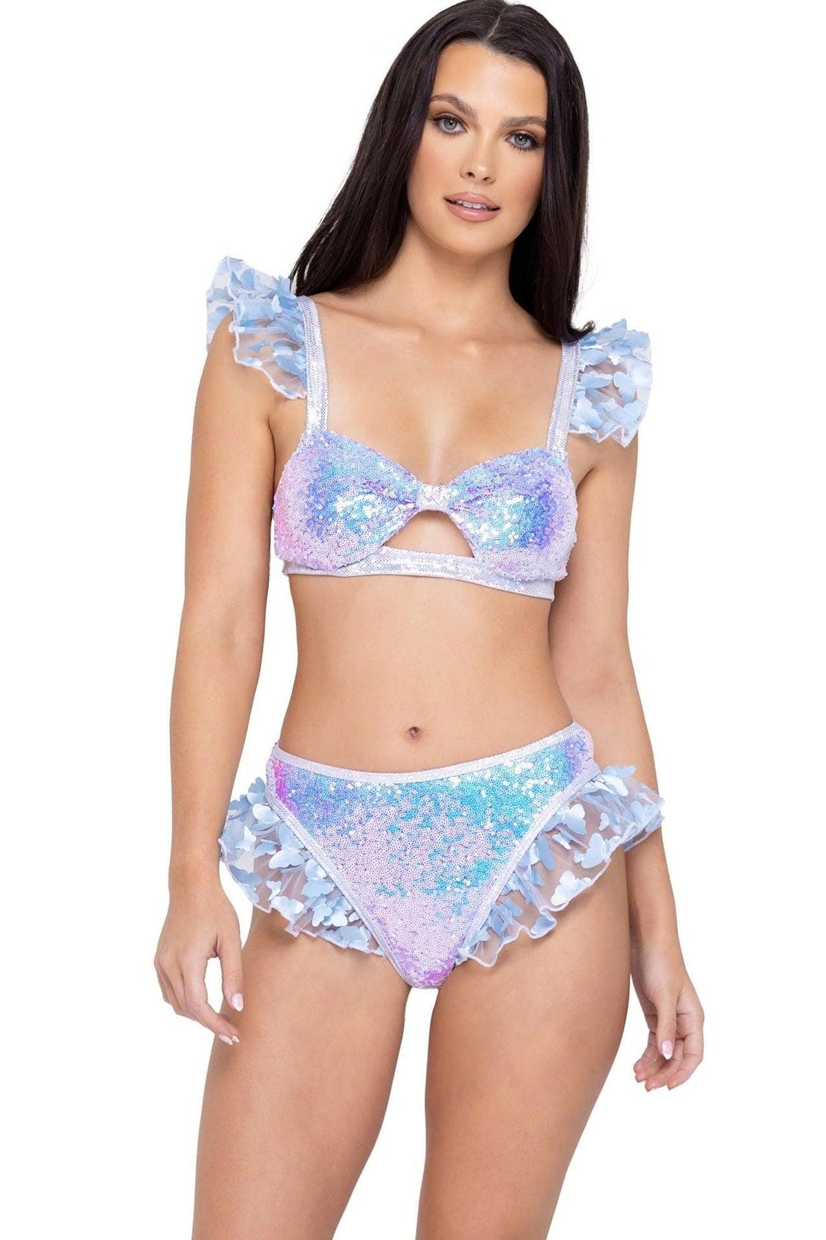 Sequin Keyhole Top with Butterfly Ruffle Trim
