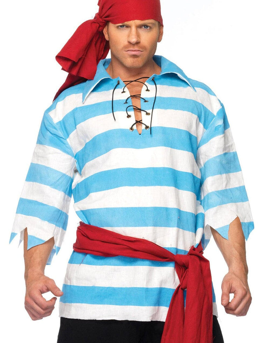 4 Piece Pillaging Pirate, striped shirt, tattered pants,sash,head scarf
