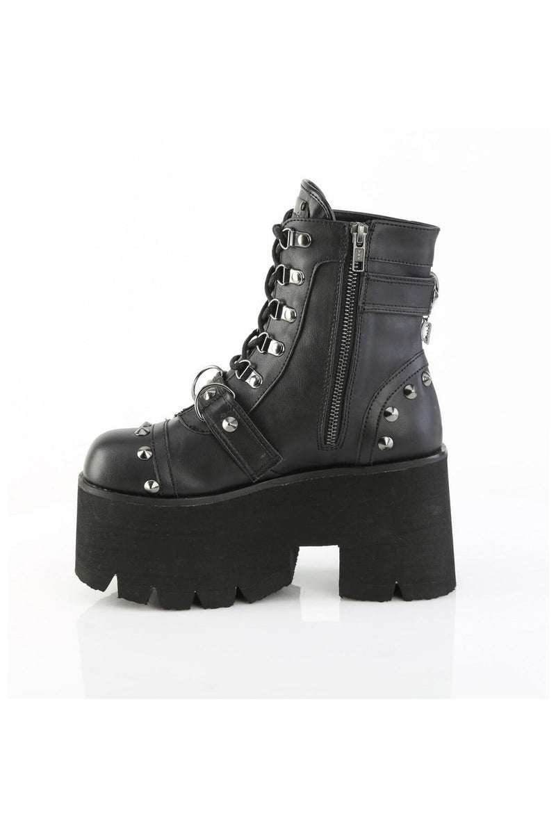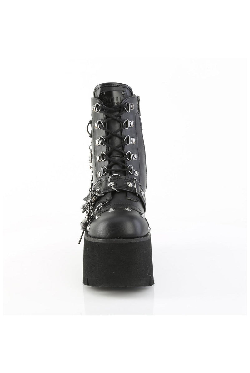 3 1/2" Chunky Heel, 2 1/4" Platform Lace-Up Ankle Boot, Side Zipper