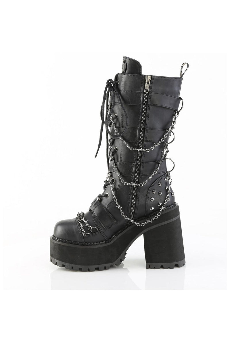 4 3/4" Heel, 2 1/4" Platform Lace-Up Mid-Calf Boot, Side Zipper