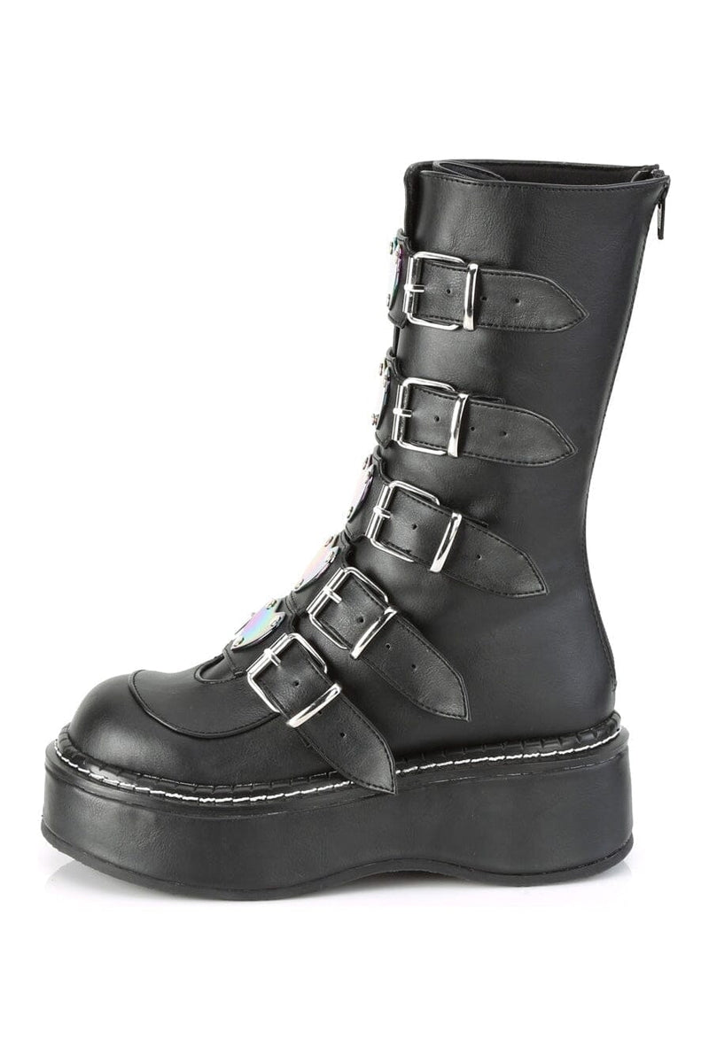 2" Platform Calf High with 5 Buckle Straps, Back Metal Zipper