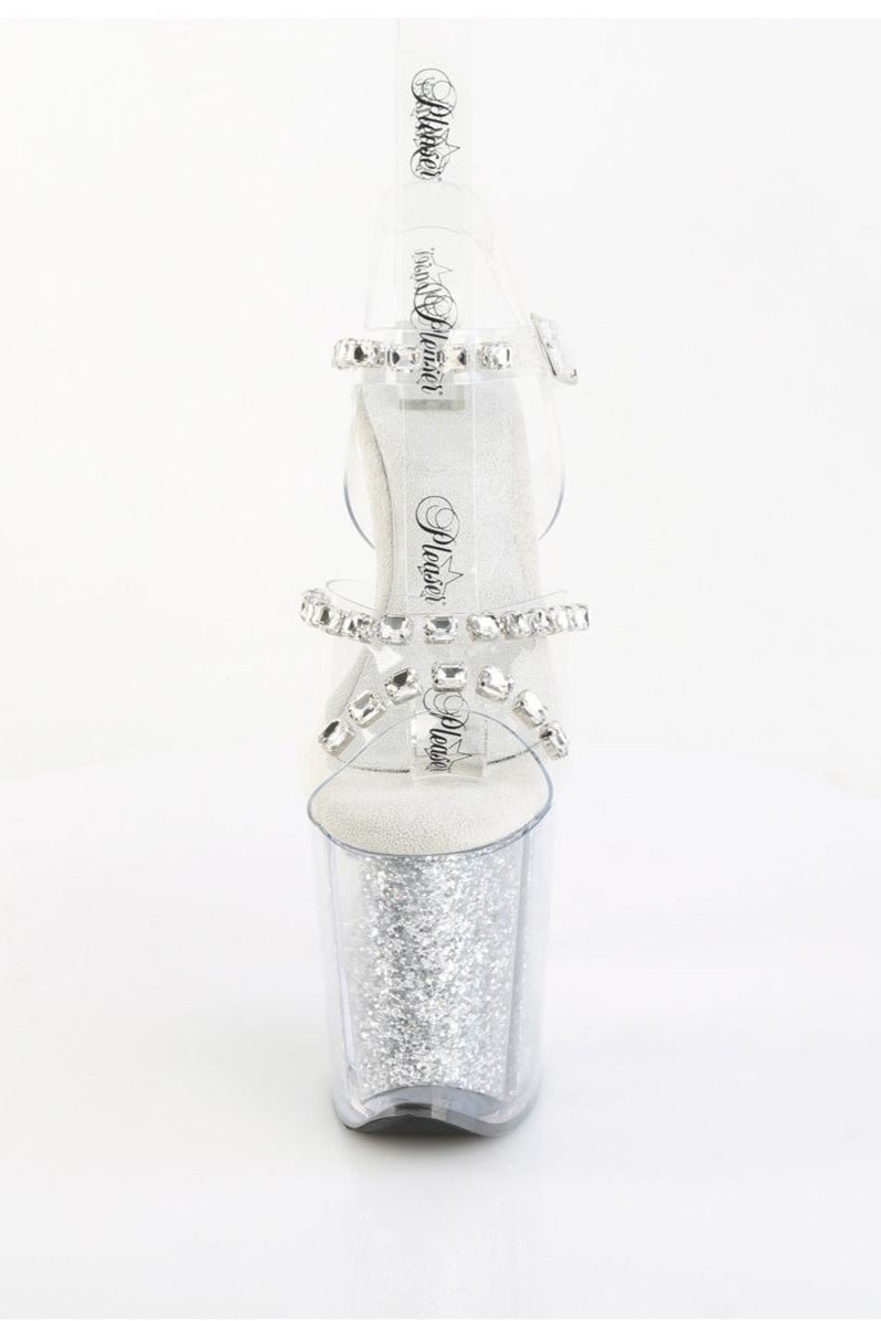 8" Heel, 4" Platform Ankle Strap Sandal w/Glitter Inserts