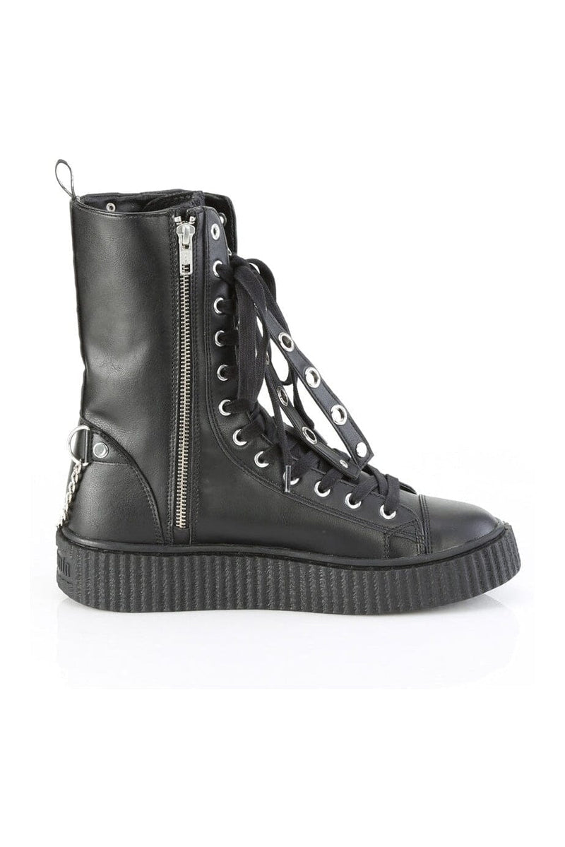 1 1/2"Platform Round Toe Lace Up Front Calf High Creeper Sneaker