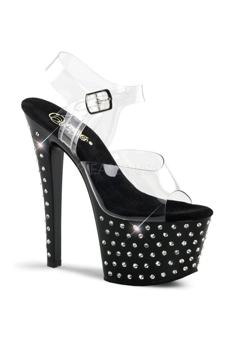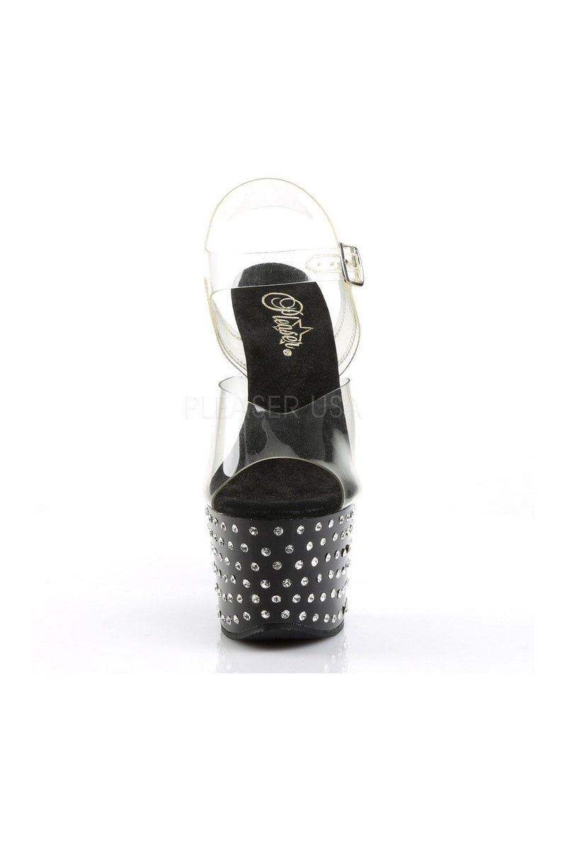 7" (17.8cm) Heel 2 3/4" (7cm) Platform Ankle Strap Sandal Featuring Rhinestone Studded Bottom
