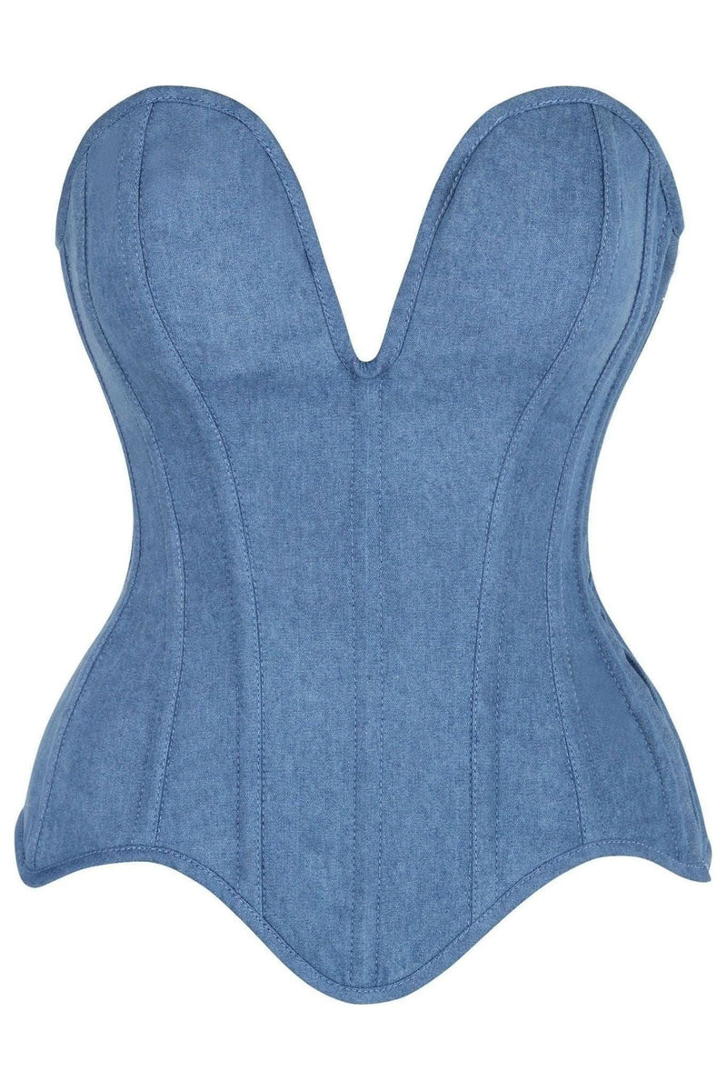 Top Drawer Steel Boned Blue Denim Plunge Neckline Overbust Corset