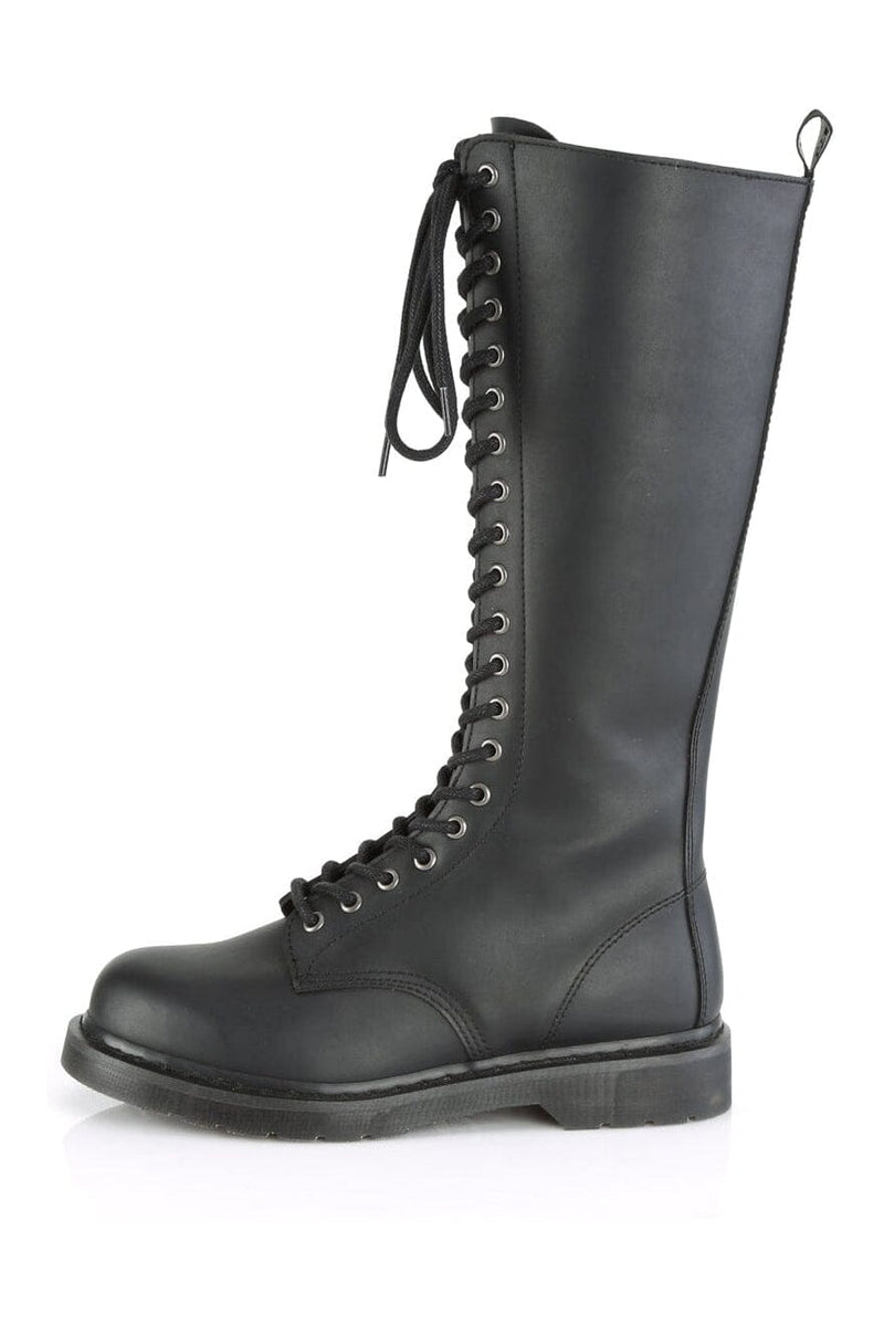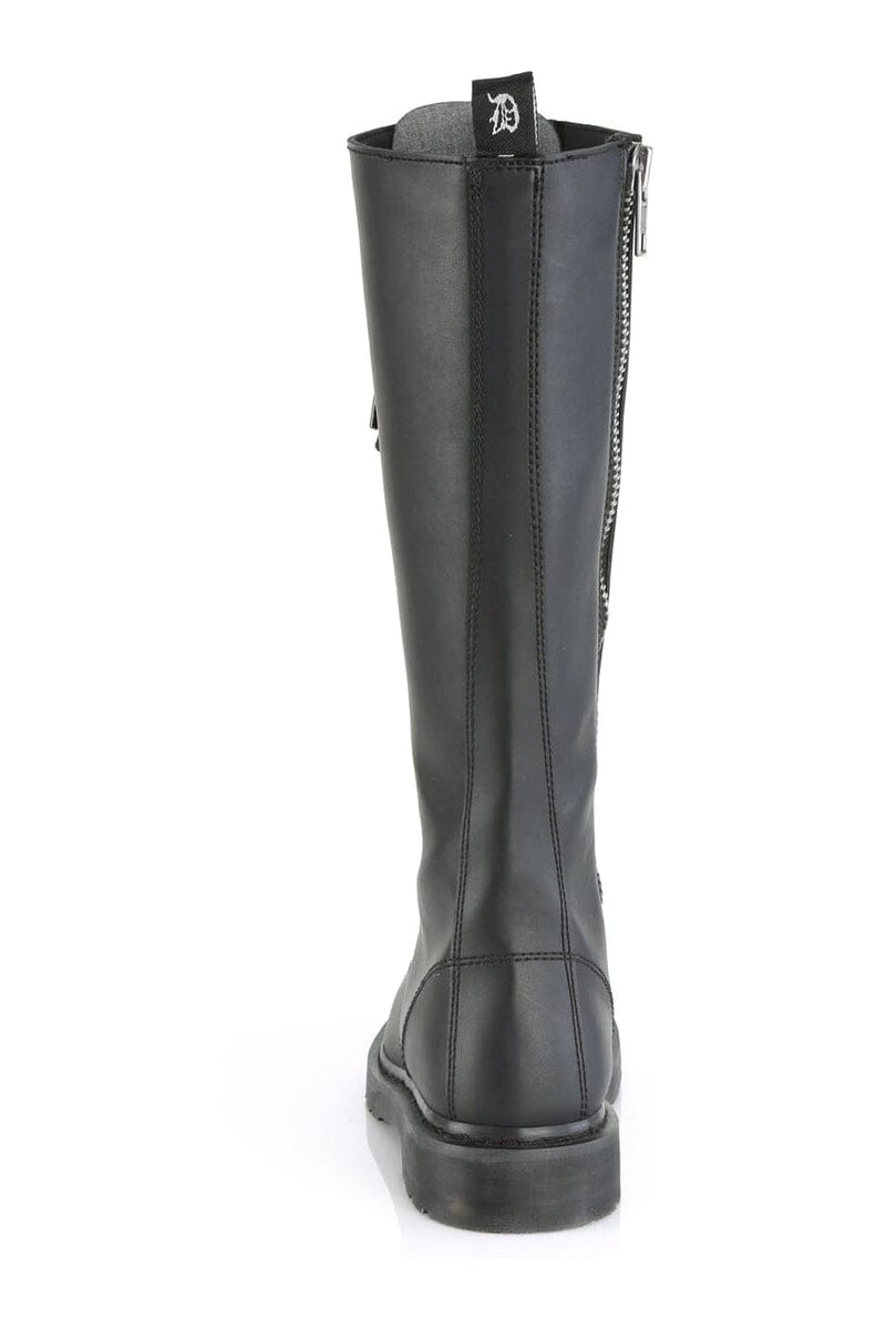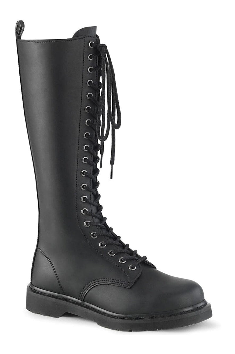 1 1/4" Heel 20-Eyelet Knee High Unisex Vegan Boot, Side Zipper