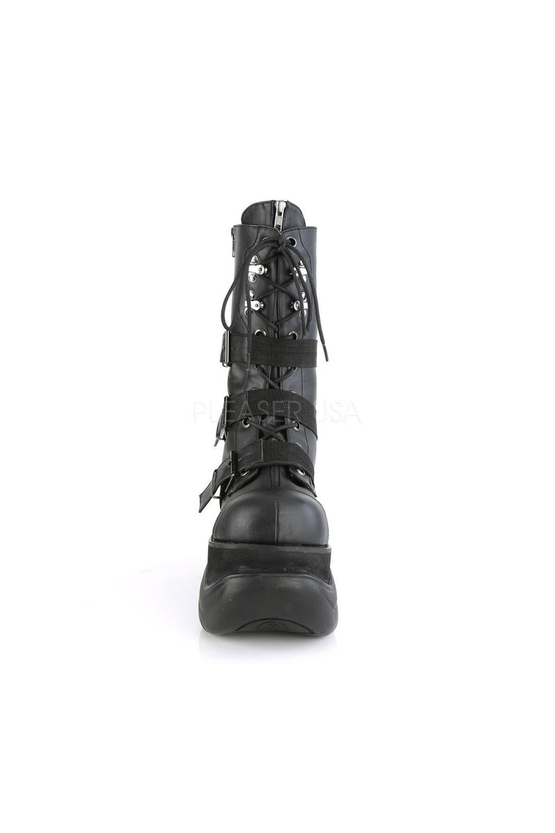 - Heel Specifications: 4" Platform Lace-Up Mid Calf Boot