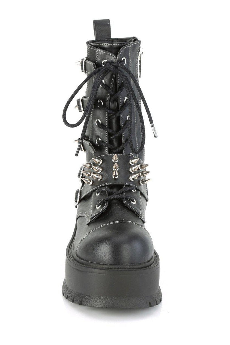 2" Platform Lace-Up Mid-Calf Boot, Side Zipper