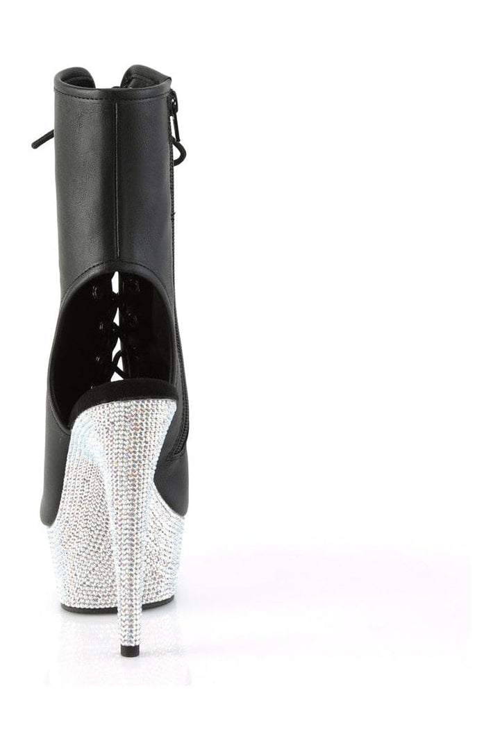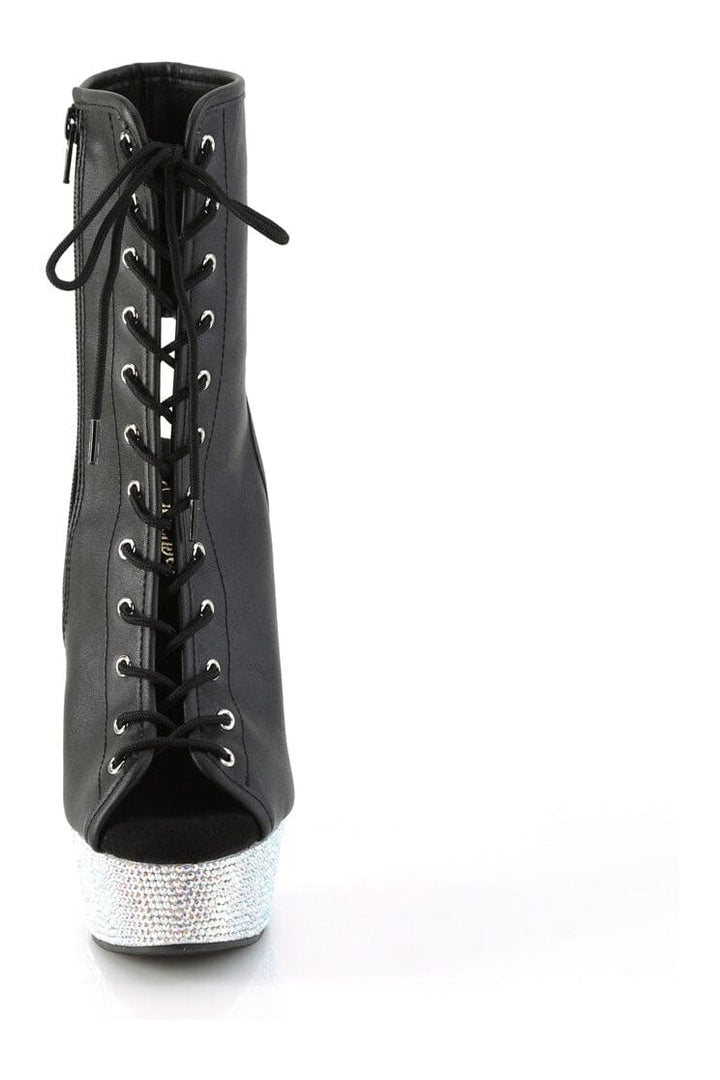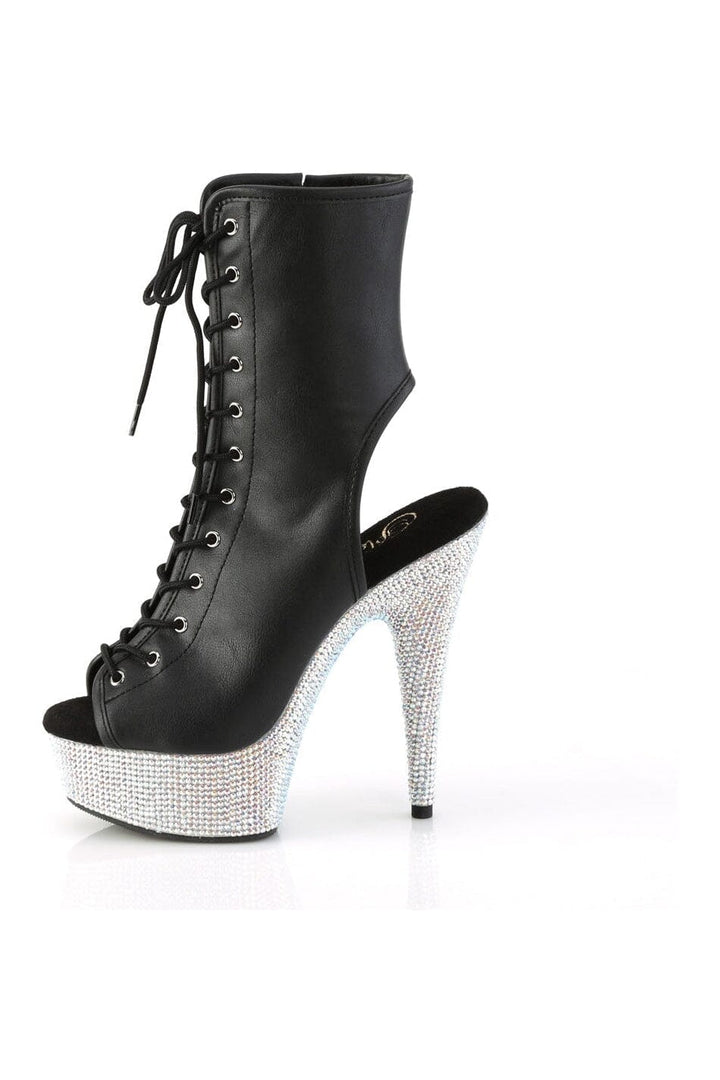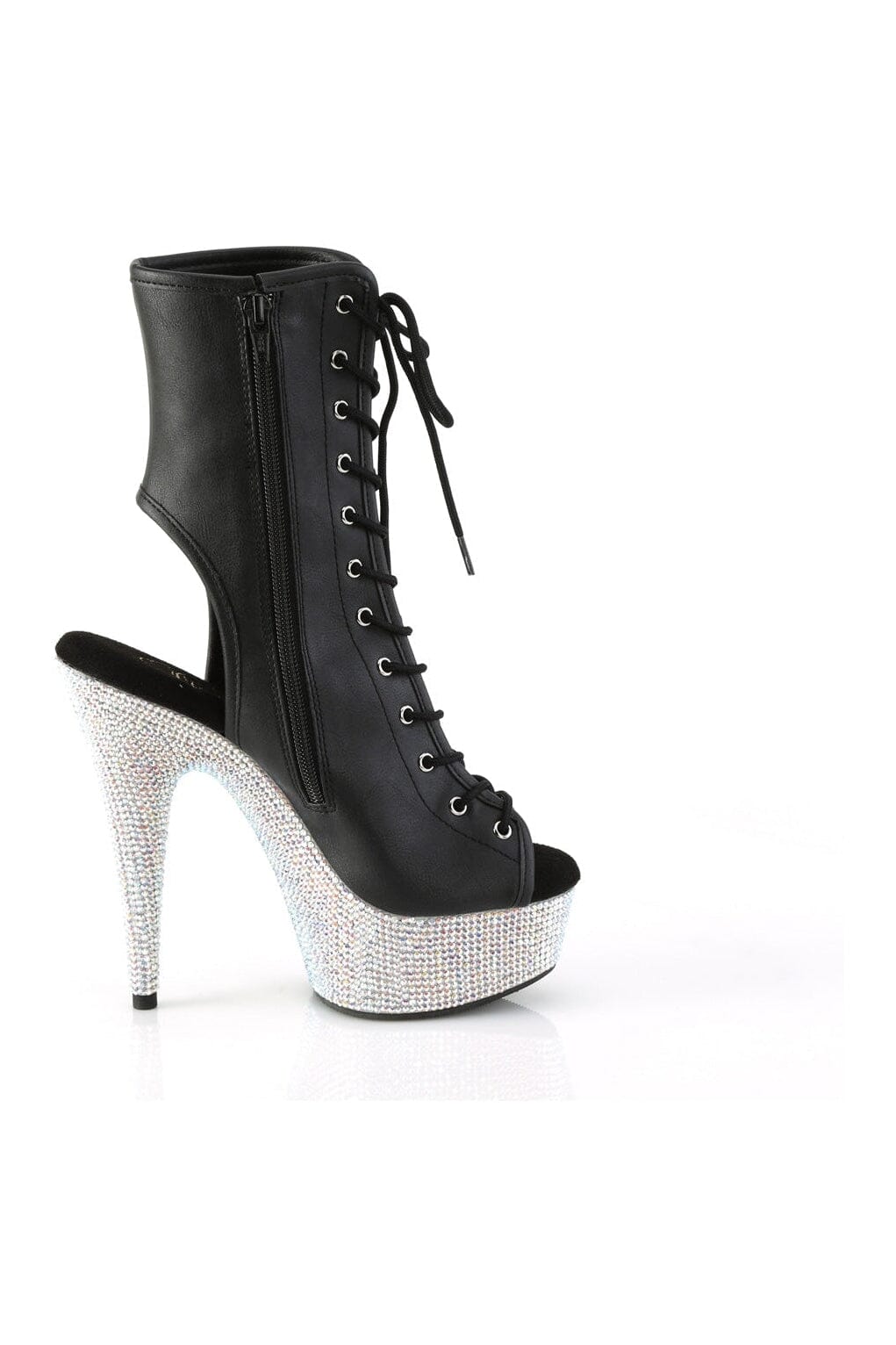6" Heel, 1 3/4" Platform Open Toe/Heel Lace-Up Ankle Boot with Rhinestone