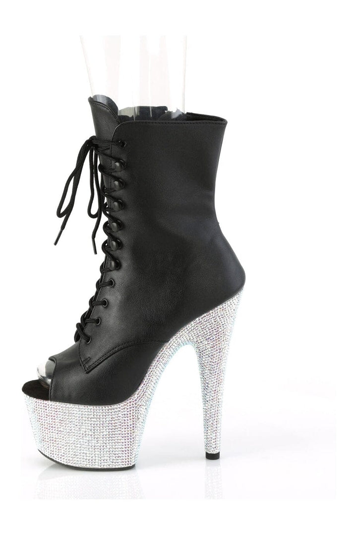 7" Heel, 2 3/4" Platform Peep Toe Ankle Boot with Rhinestones, & Side Zipper