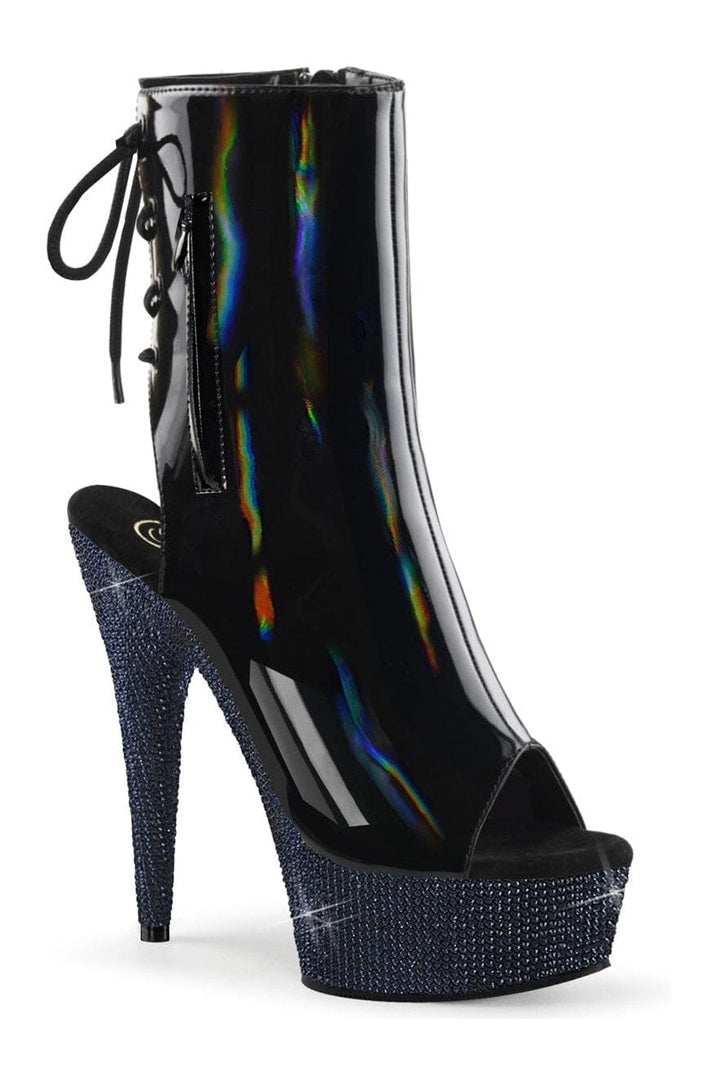 6" Heel, 1 3/4" Platform Open Toe/Heel Ankle Boot with Rhinestones, & Side Zipper