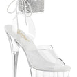 7" Unicorn Heel, 3 1/4" Platform Ankle Strap Sandal w/Rhinestone Trucker G