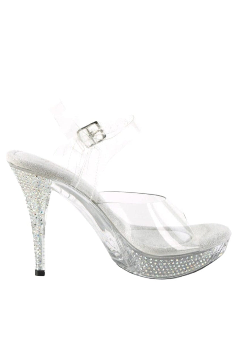 4 1/2" Heel, 1" Platform Ankle Strap Sandal with Rhinestones