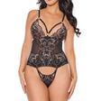 A babydoll fit for a queen! This 2 Pc Metallic Stretch Lace Babydoll Set features a stunning two-tone lace design that captures the eye. Accented with rose gold toned hardware, this babydoll set includes underwire cups with adjustable straps, an elasticized underbust, back keyhole with hook & eye closure, and adjustable straps with hookable slider. Matching thong features lace-waist design.