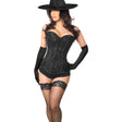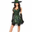 - Costume Includes: Corset, Witch Hat, Black Gloves