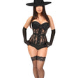 - Costume Includes: Underbust Corset, Lace Witch Hat, Black Gloves