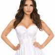 - Costume Includes: Body Harness w/Wings, Metallic Fringe Skirt, Devil Horns, Pitchfork
