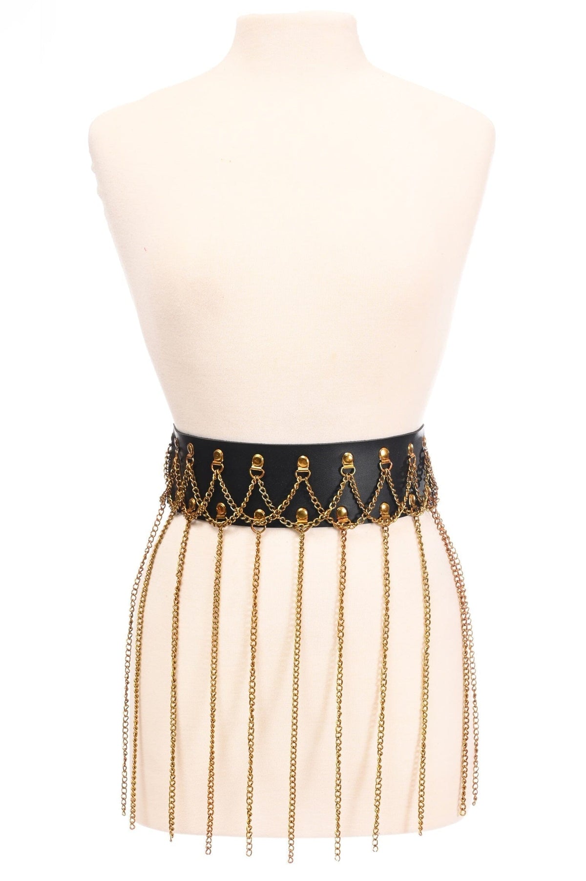 Daisy Corsets Black Faux Leather & Gold Metallic Chain Fringe Skirt in Black  from SexyShoes.com