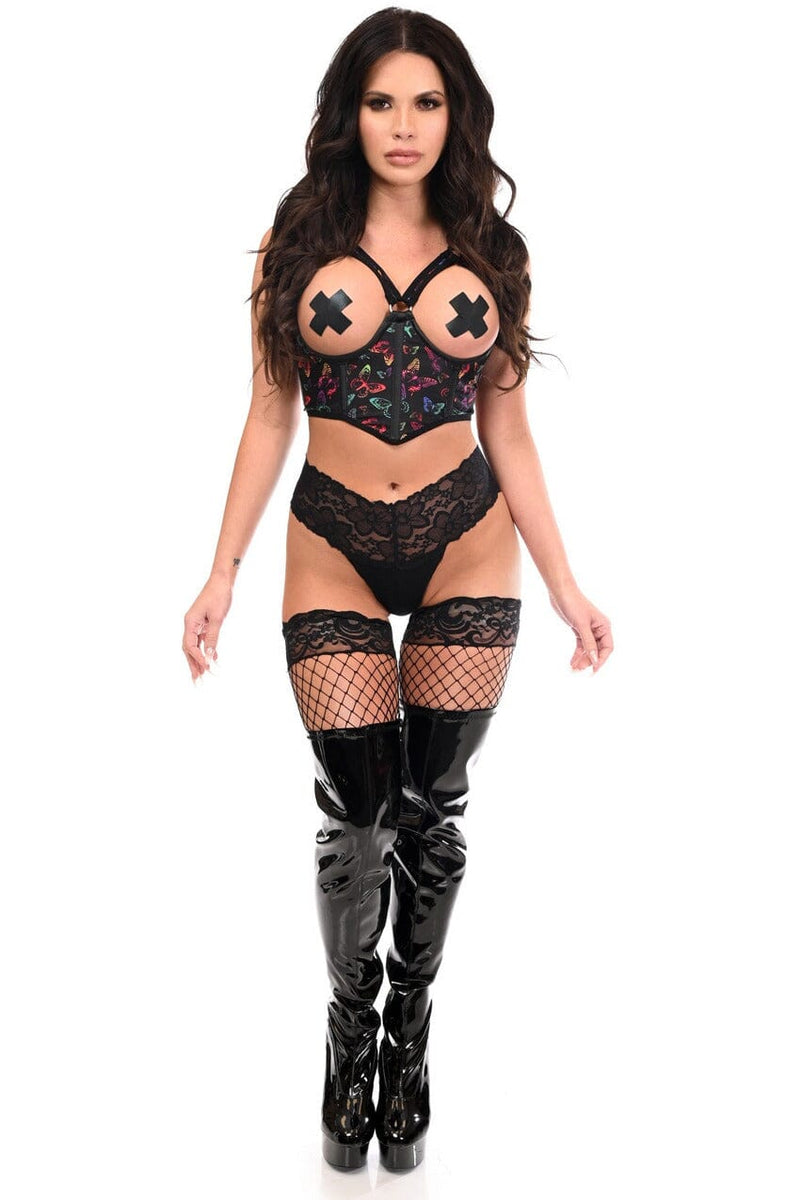Lavish Neon Butterfly Underwire Open Cup Lycra Cincher w/Criss Cross Back