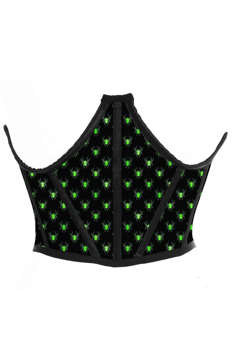 Black & Green Spiders Satin Open Cup Waist Cincher
