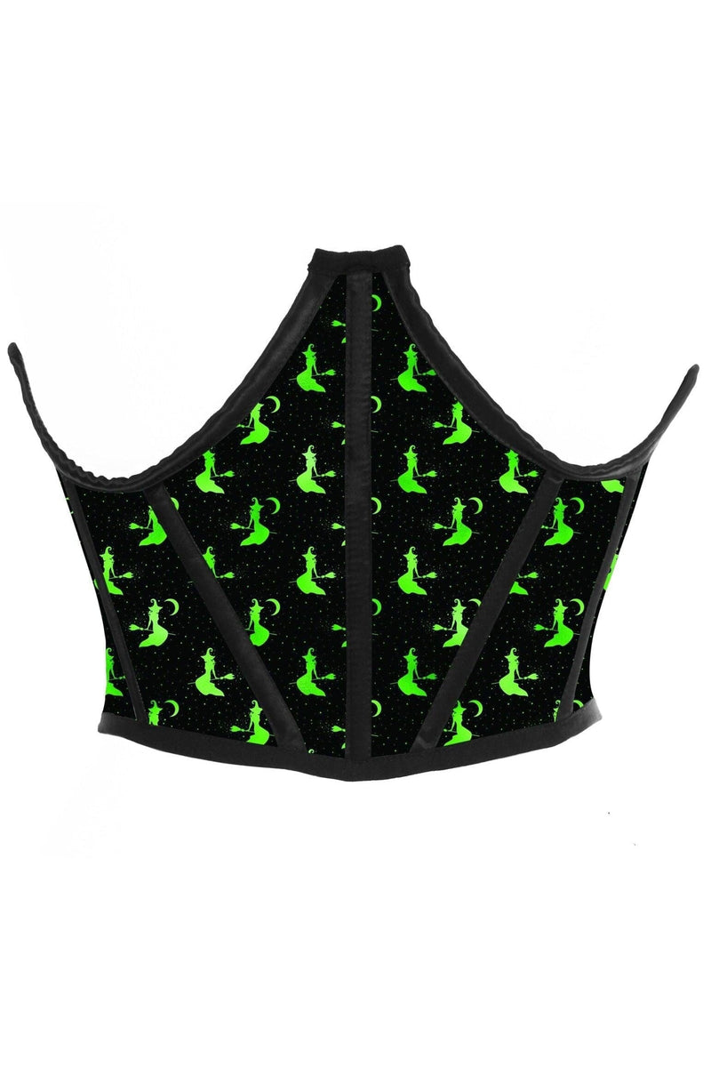 Black & Green Witches Satin Open Cup Waist Cincher