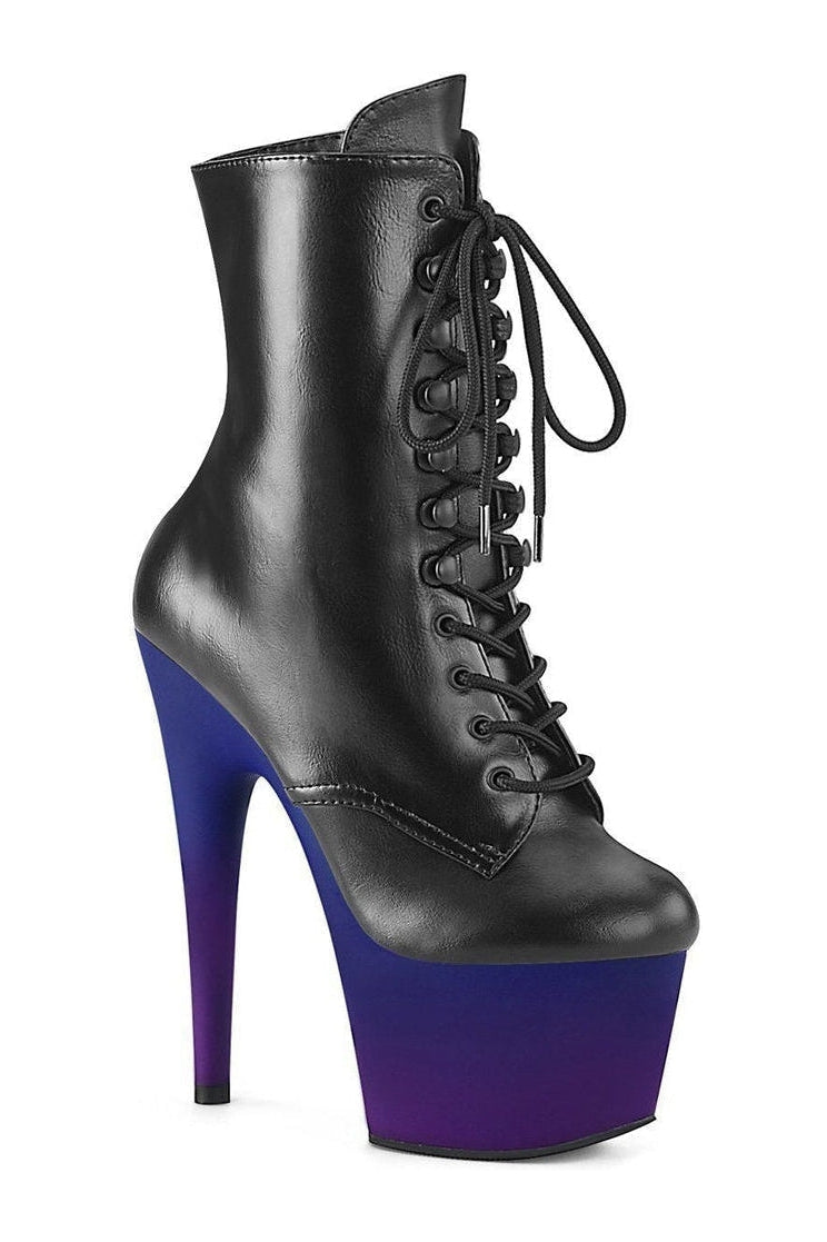 7" Heel, 2 3/4" Platform Lace-Up Ankle Boot, Side Zipper