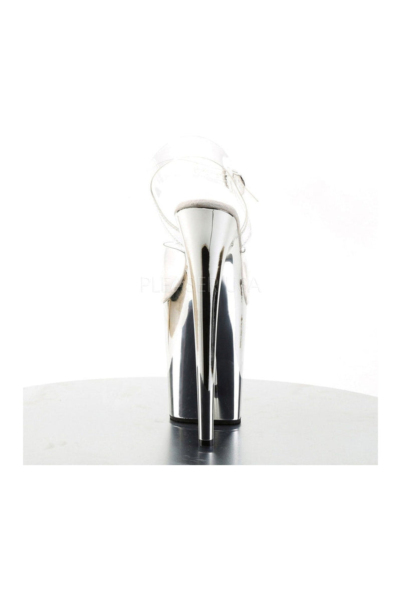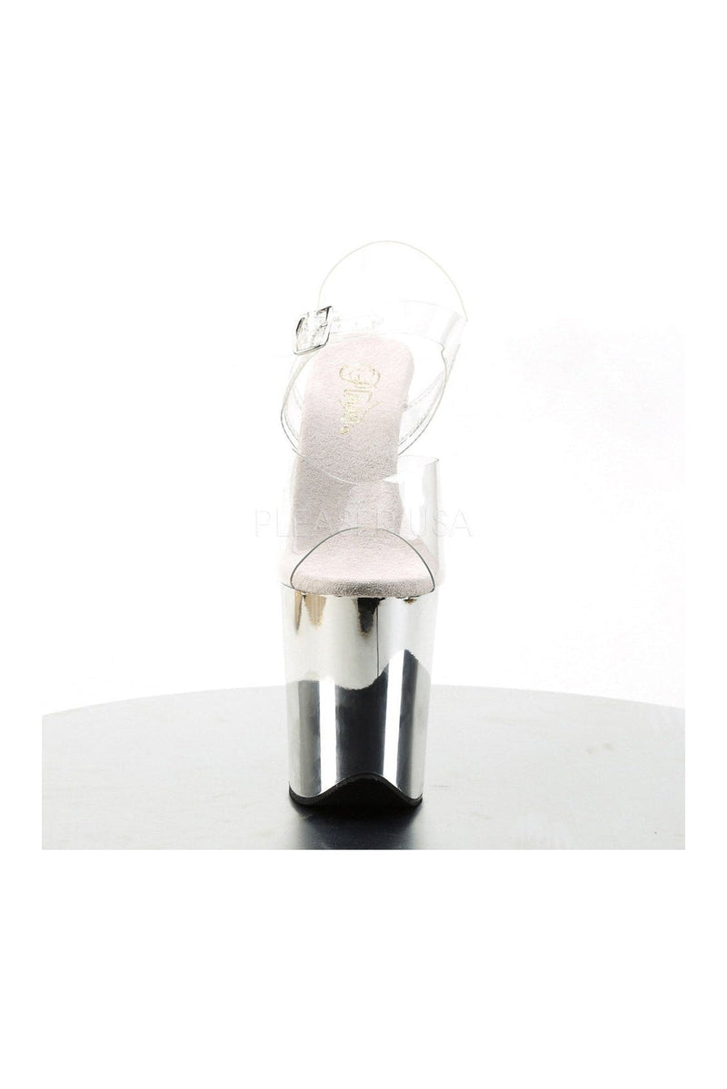 8" (20.3cm) Stiletto Heel 4" (10.2cm) Platform Ankle Strap Sandal with Chrome Plated Bottom