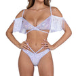 Pictured with matching sequin fishnet top with fringe (sold separately), this Sequin Fishnet Brief features the best of both words when it comes to color and material. The attached straps add a dash of intrigue while the puckered back has its own charm.