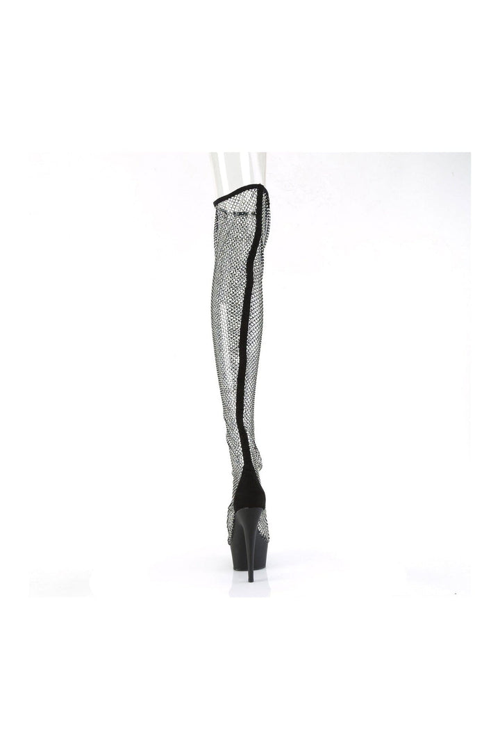 6" Heel, 1 3/4" Platform Pull-On Rhinestone Mesh Thigh High Boot
