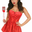 - Costume Includes: Body Harness w/Wings, Metallic Fringe Skirt, Devil Horns, Pitchfork